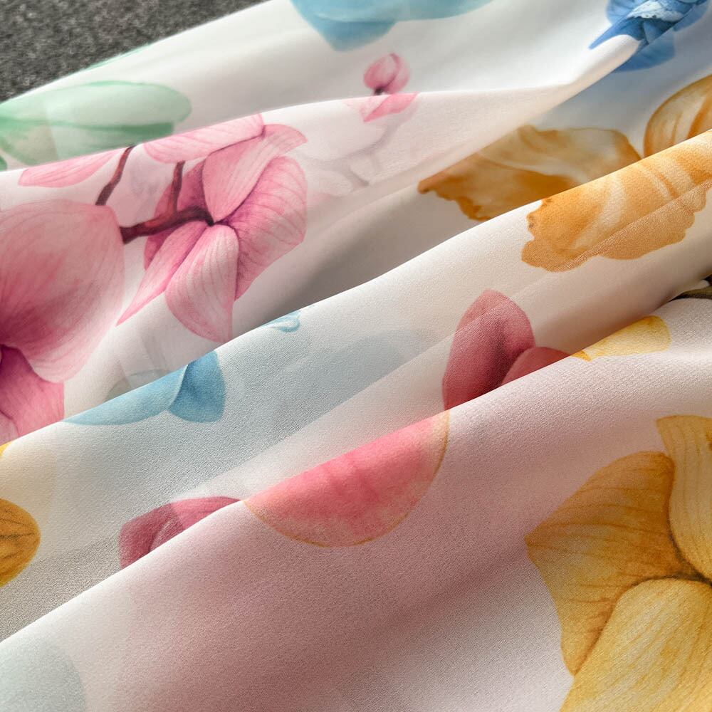 ニッチなデザインのスラントネックドレスレディースサマーニューシーサイドホリデーシフォンプリントロングスカート 夏物 lyxaj97686915764