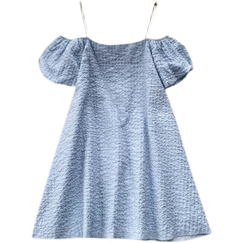 ホリデースタイル2022夏新気質ワンショルダーレトロジャカードルーススリングAラインワンピース小 サマー 夏物 lyxaj50392961910