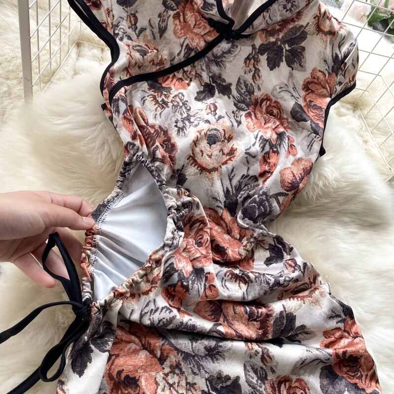 改良されたチャイナドレスヤングライト成熟した女性のレトロなプリントスタンドカラードレス女性のスリムスリムパックヒップロングスカート lyxaj49523182616