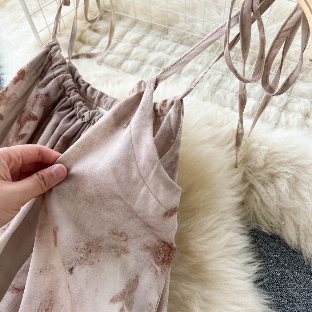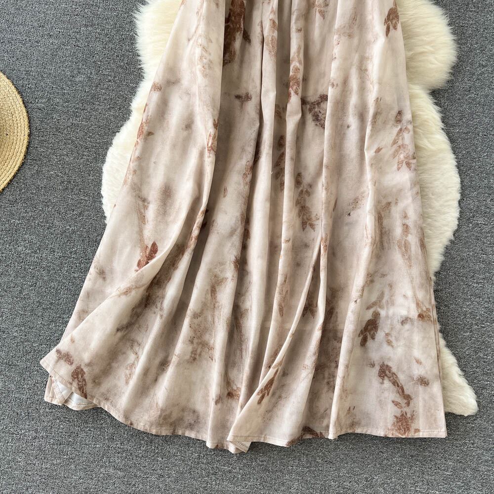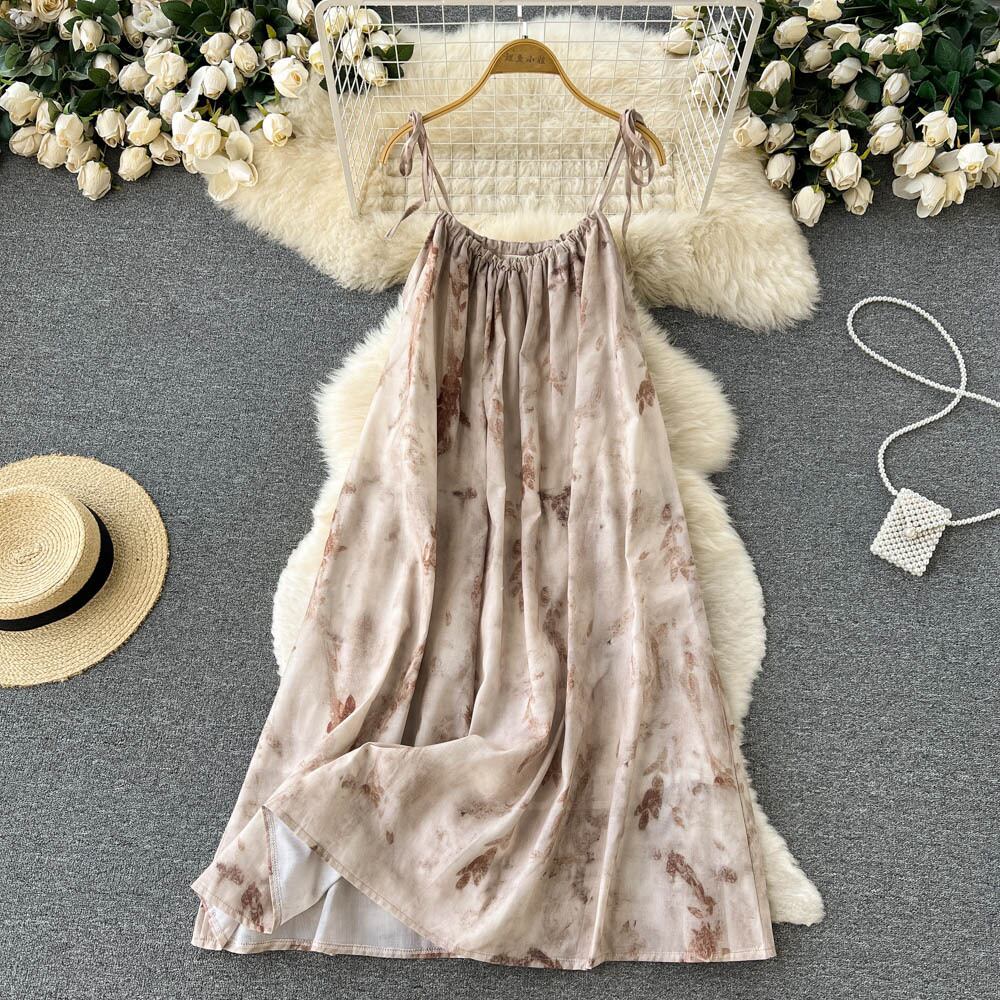 カジュアル文学レトロプリントサスペンダードレス女性海辺旅行ホリデービーチスカート超妖精気質大スイングスカート lyxaj91963432893