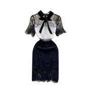 セレブ気質ボウネックメッシュパースペクティブステッチレースドレスレディーススリムスリム気質パッケージヒップスカート リボン lyxaj27849696577