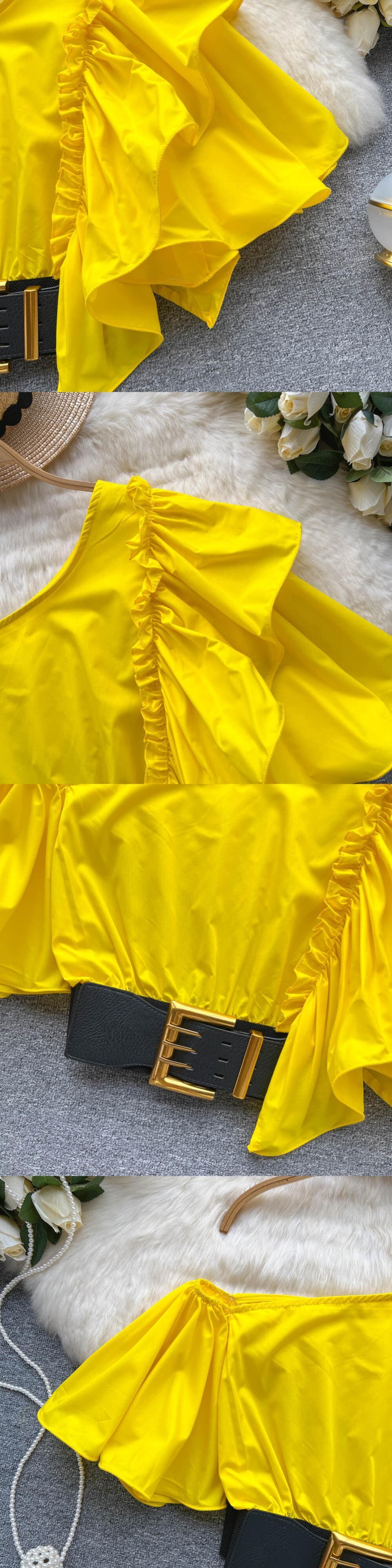 ヨーロッパとアメリカのインファッションオールマッチ鎖骨スリムフィット、不規則なハイウエストショートシャツ甘い気質トップ女性 ハイウェスト 大人ガーリー スウィート キュート カジュアル ヨーロピアン lyxaj23517372191