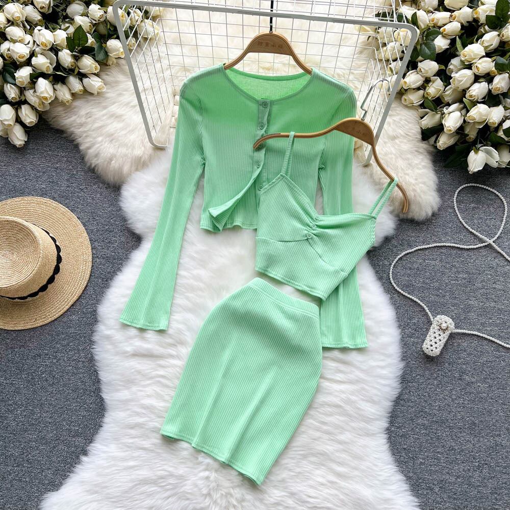 やさしい風気性スーツ半袖カーディガンスモールコートキャミソールレディースインナーバッグヒップスカートスリーピースセット ショート ロング 長袖 lyxaj73063042294