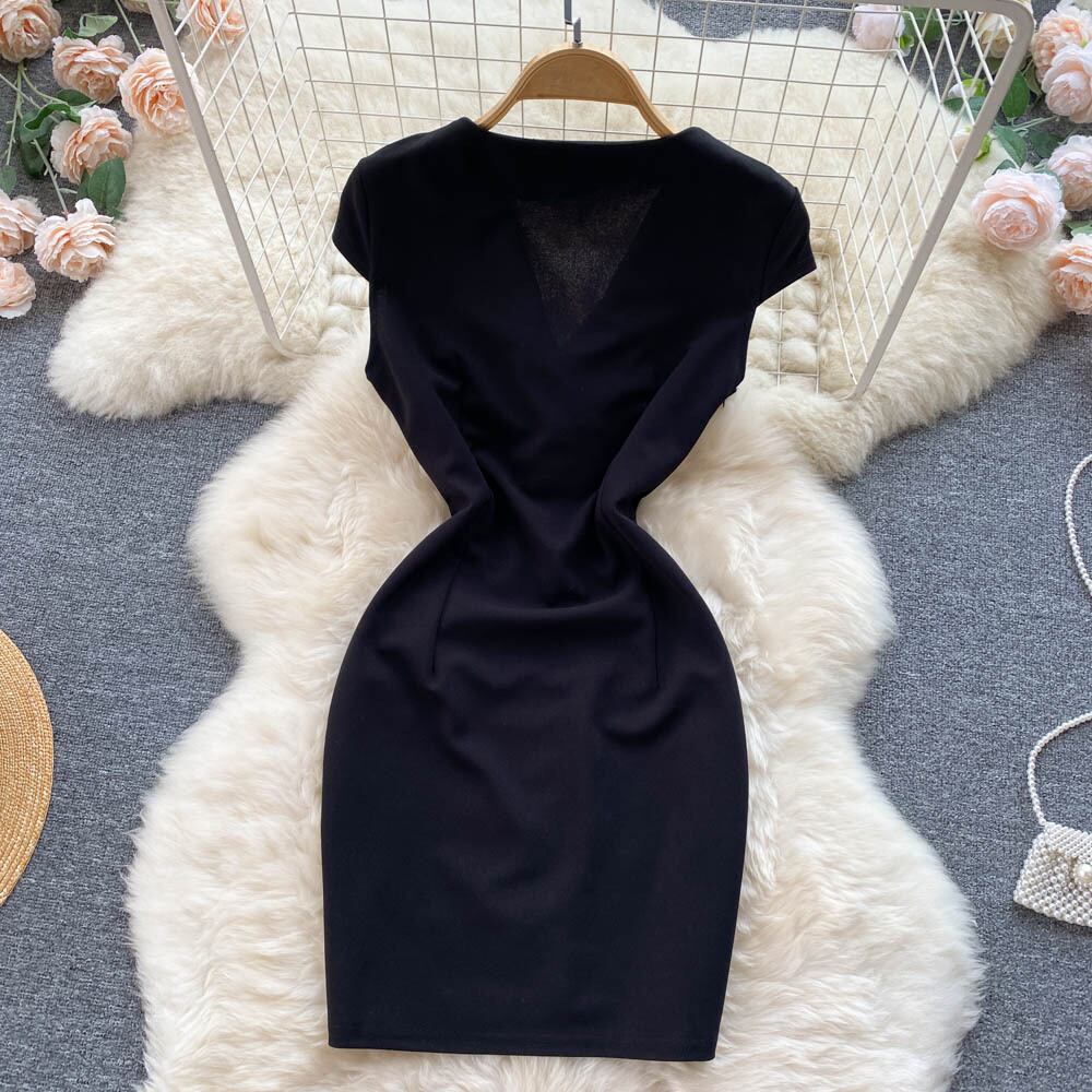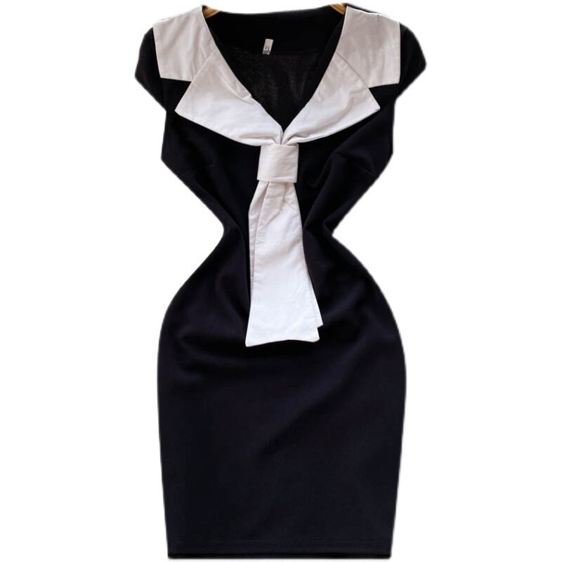 フランスのニッチなVネックコントラストカラーノースリーブドレス女性の2022年夏の新しいスリムフィットとスリムでセクシーなパッケージヒップスカート サマー 夏物 lyxaj40945612792
