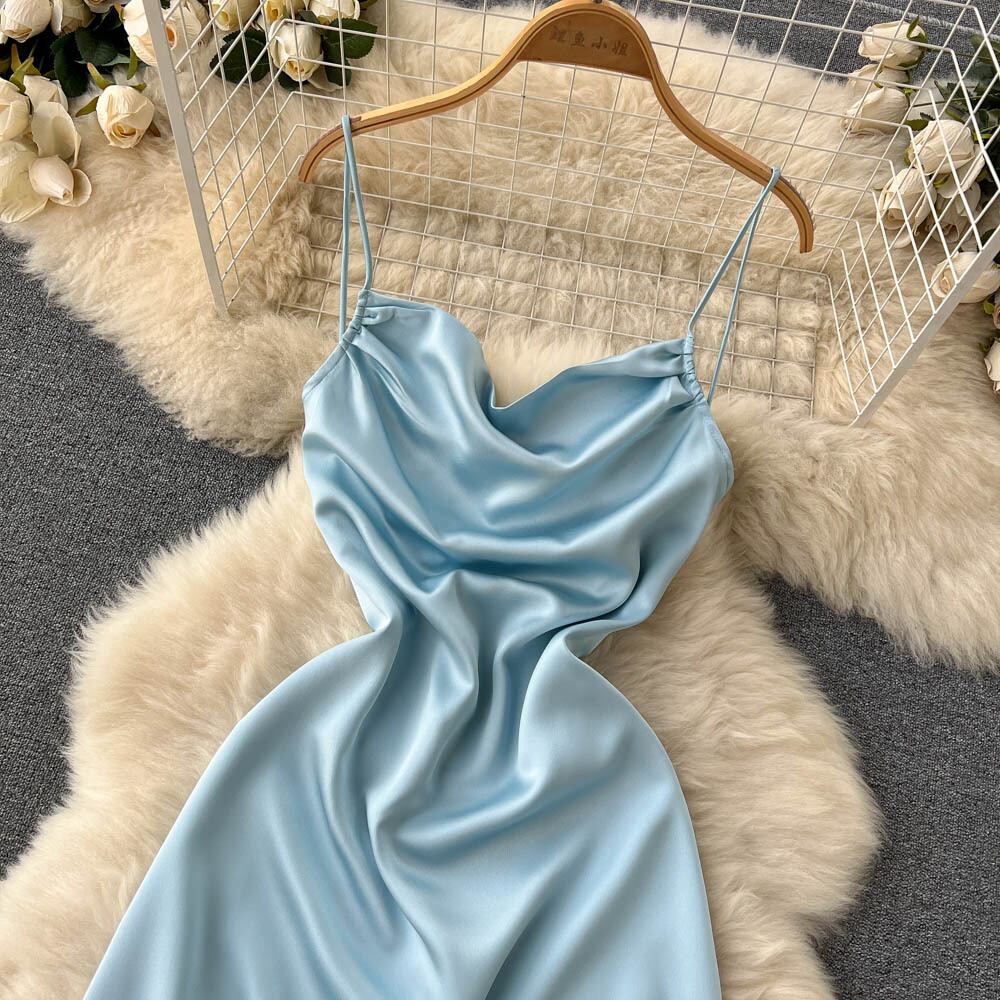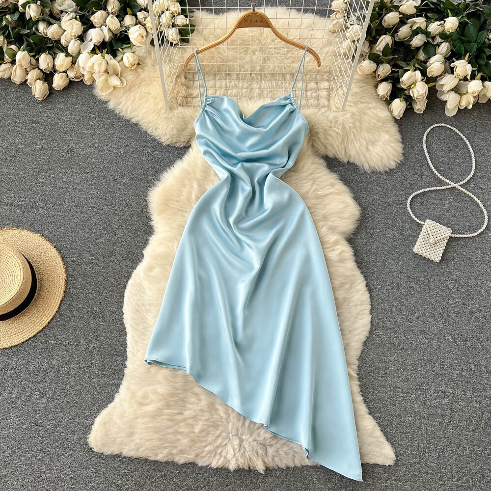 優しい気質サスペンダードレス2022年夏新作折り畳みボディリペアボディオープンバックイレギュラーAラインスカート サマー 夏物 lyxaj75467698900