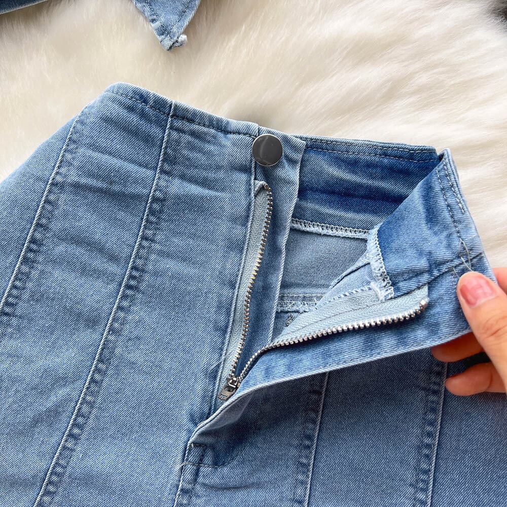 デニムサスペンダージッパーウエストベストショートアウターホットガールトップサマーツーピーススーツハイウエストワイドレッグショーツ ハイウェスト 夏物 ブルマー ワイドパンツ lyxaj73440934859