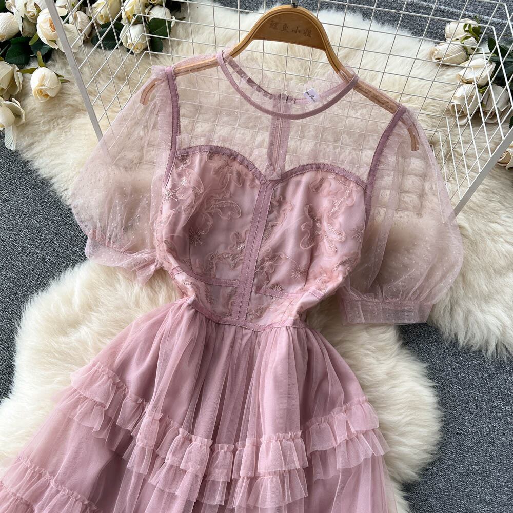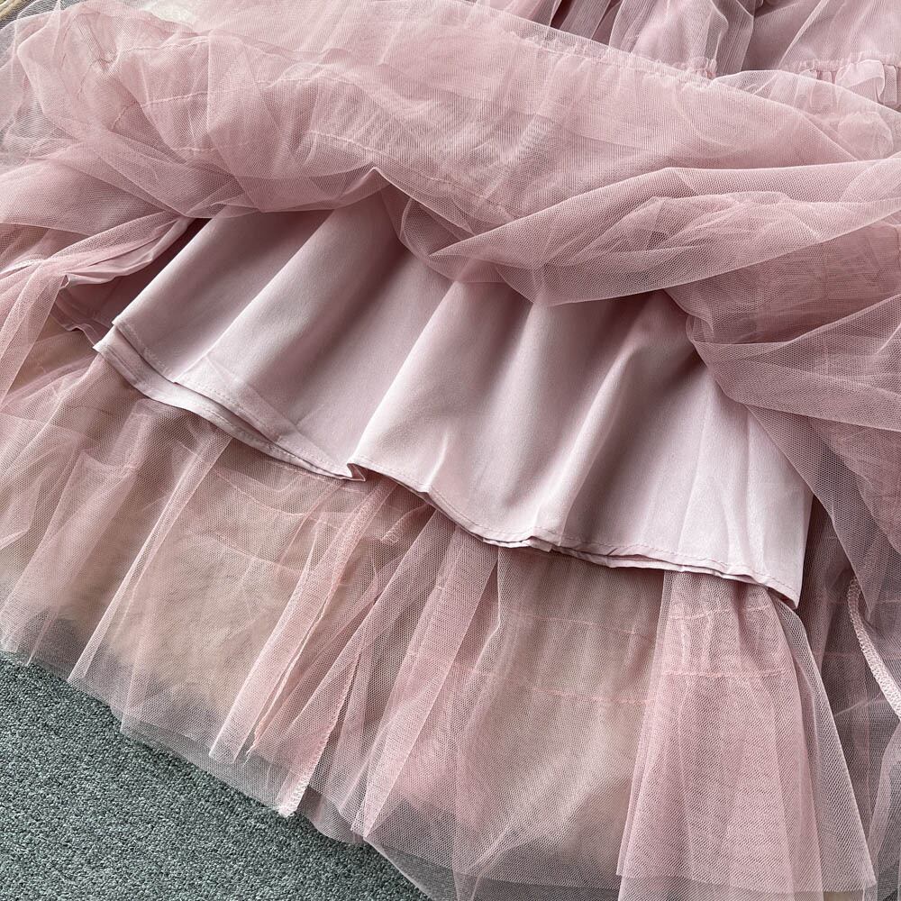 フランスのティーブレイクピンクの気質ガーゼスカート女性の2022年夏の新しいウエストと薄いスーパーフェアリースイートドレス 大人ガーリー スウィート キュート カジュアル サマー 夏物 lyxaj87984700882
