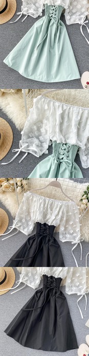 シックな妖精の甘い三次元花びらシフォンパフ袖ステッチネクタイウエストスリミングワンショルダードレス 大人ガーリー スウィート キュート カジュアル lyxaj66741186452