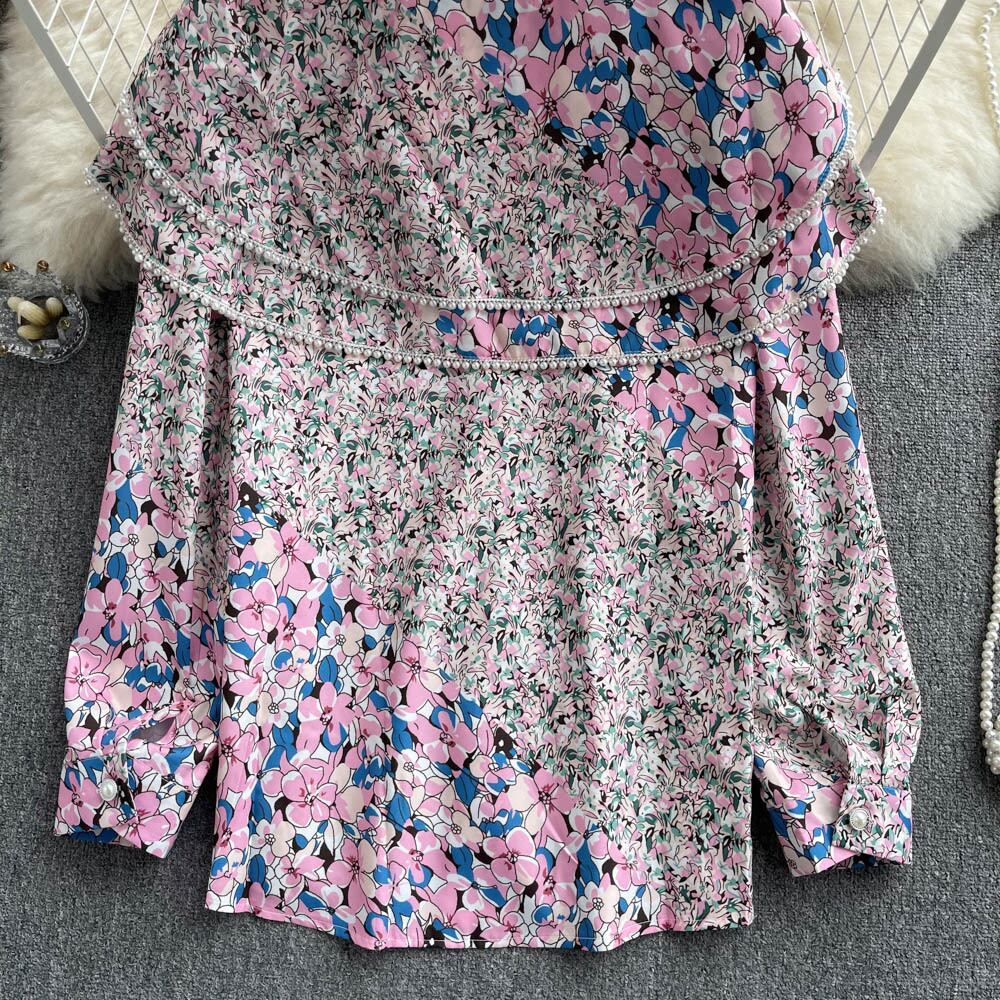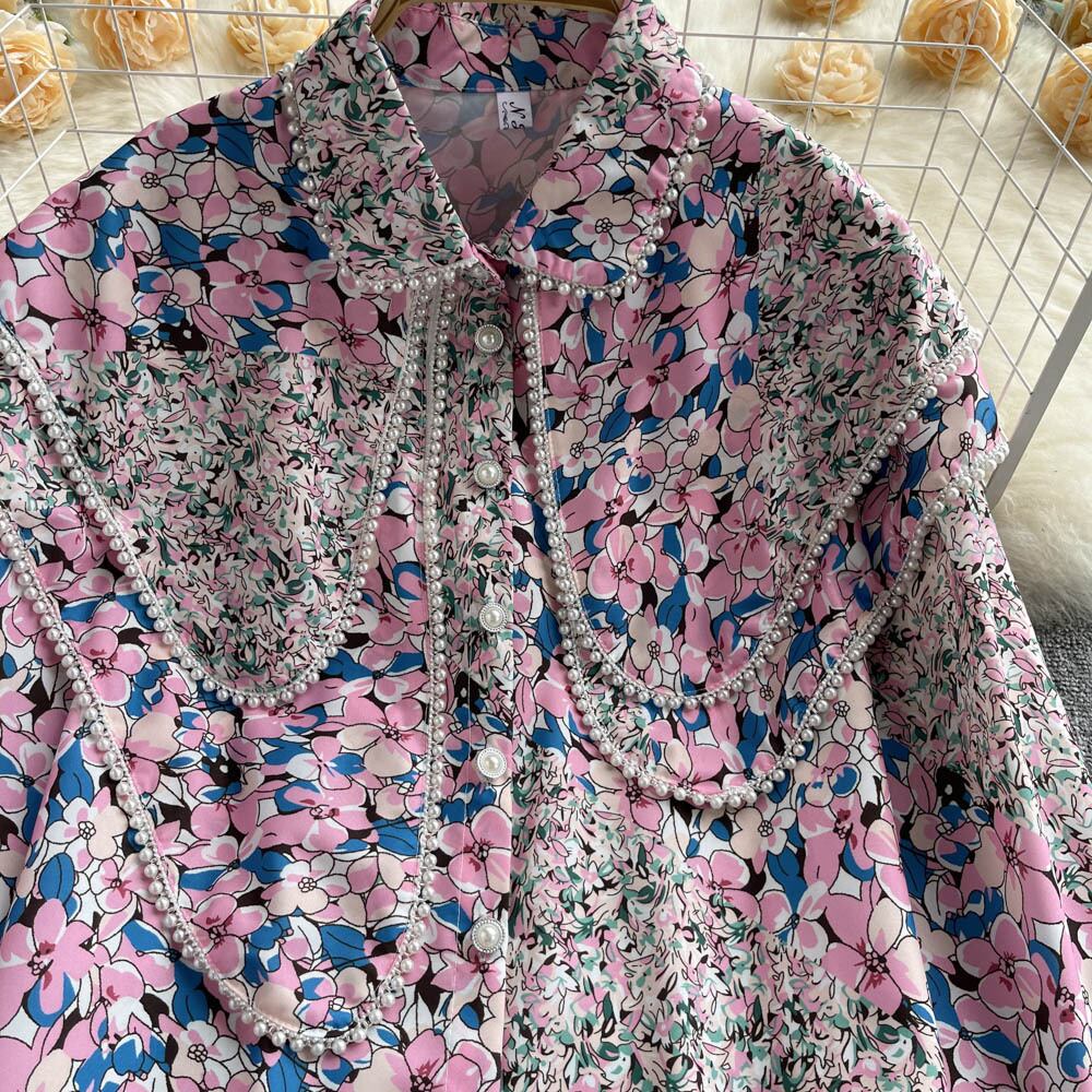 セレブスタイルフローラルパールドールカラーシャツレディース2022年夏新韓国版は薄くて超妖精気質トップ サマー 夏物 花柄 真珠 lyxaj97648324027