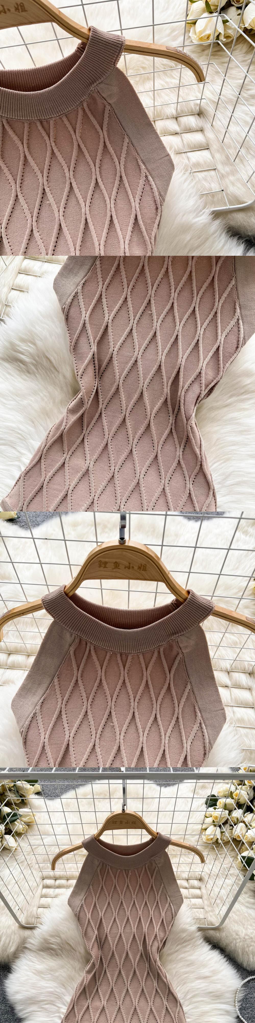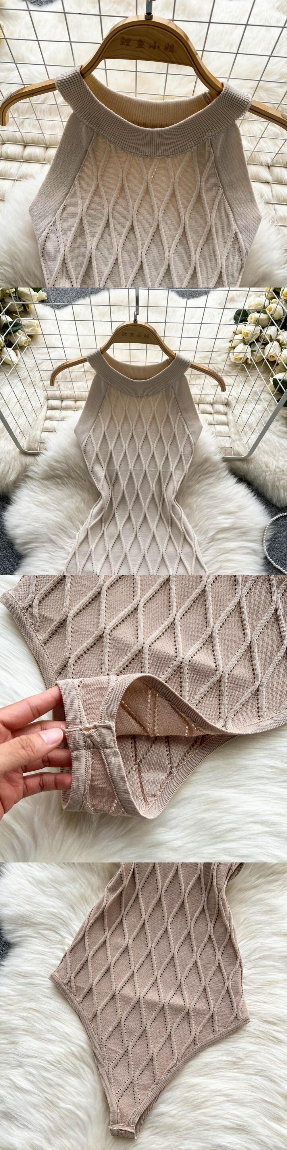 ノースリーブホルターネックワンピースハイフォークドレス女性夏オフショルダースリム気質セクシーチェック柄ニットヒップワンピース サマー 夏物 lyxaj36989280501