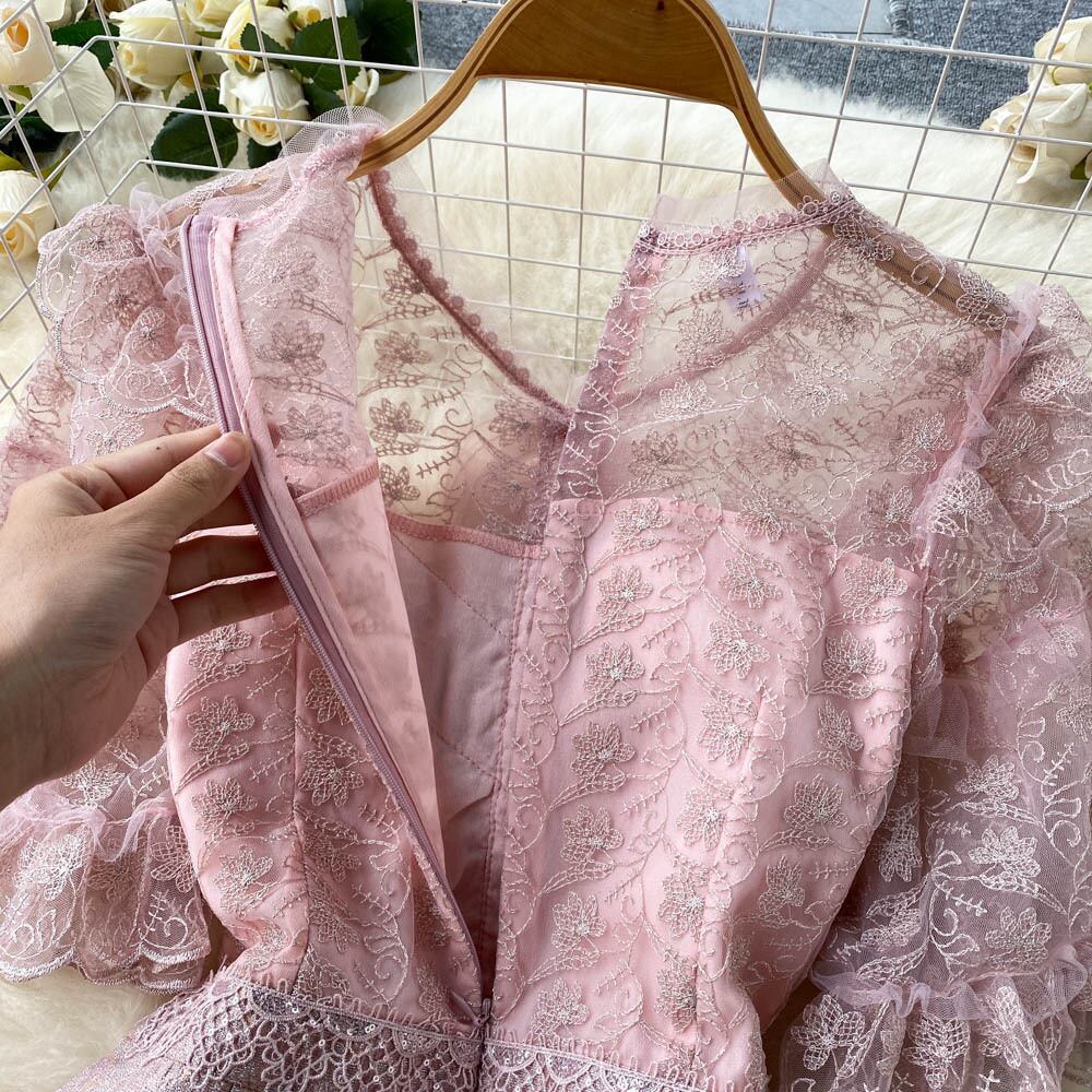 コートスタイルのドレスレトロ重工業刺繍蓮の葉トリムショート気性ドレス夏の女性の小さなドレス サマー 夏物 lyxaj51163770708