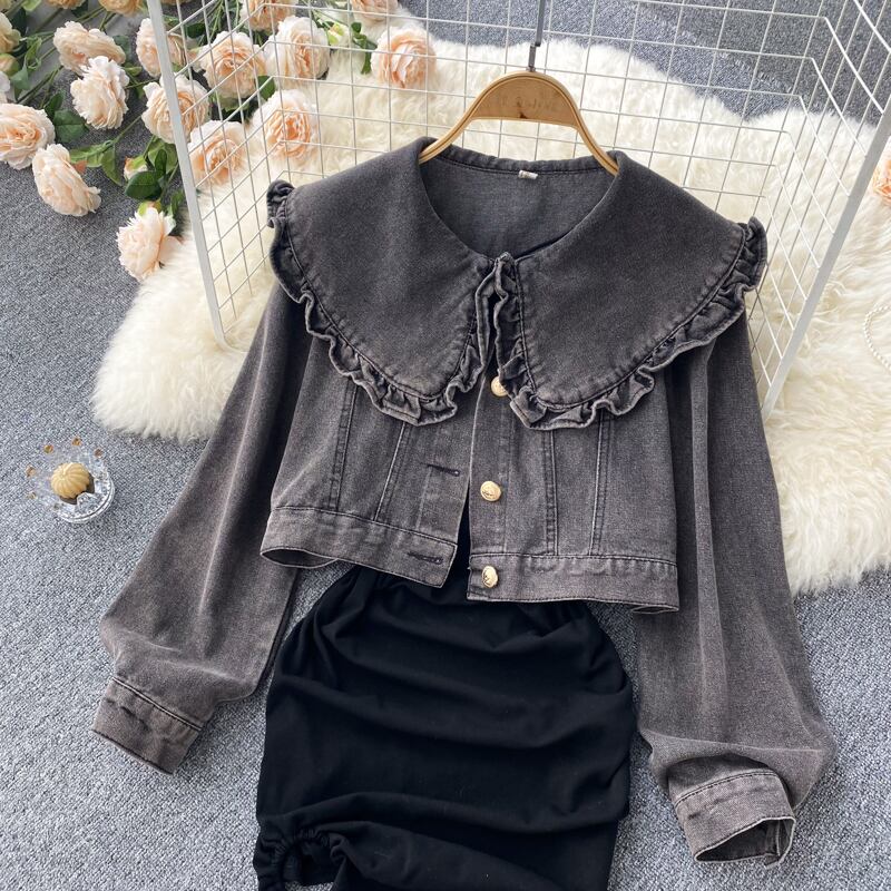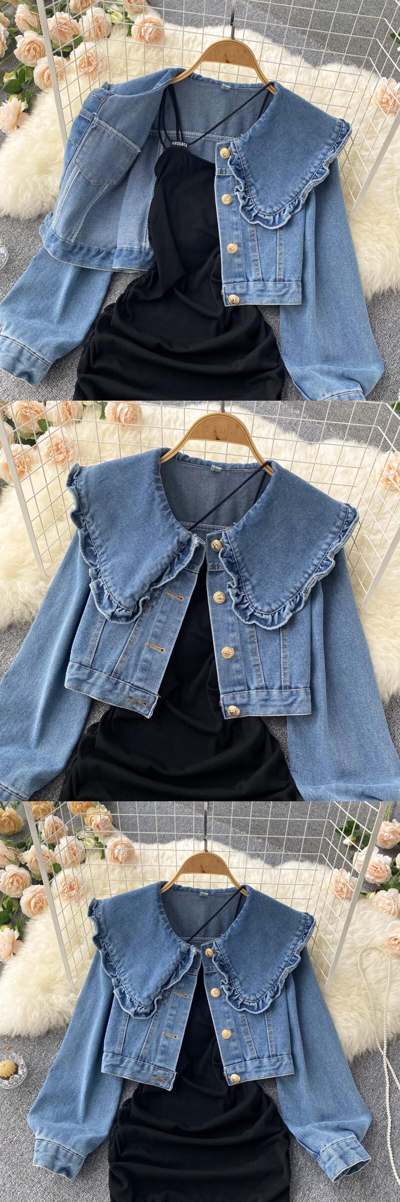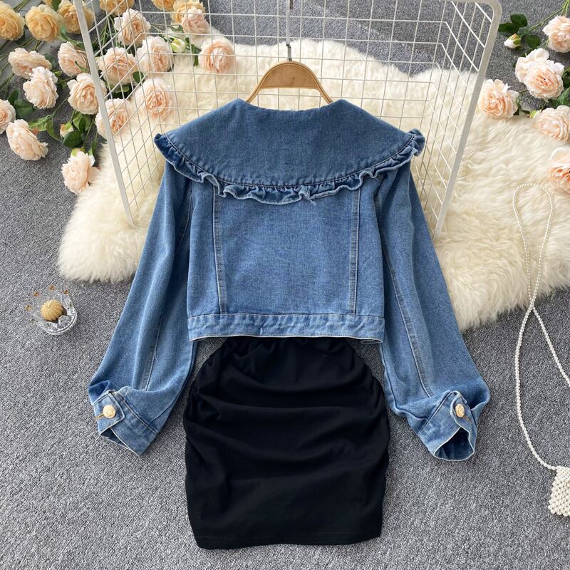 2022年春夏新作ラペルショートデニムジャケットプリーツサスペンダーワンピースツーピースレディースデザインセンススーツトレンド スプリング 春物 サマー 夏物 lyxaj11678632338