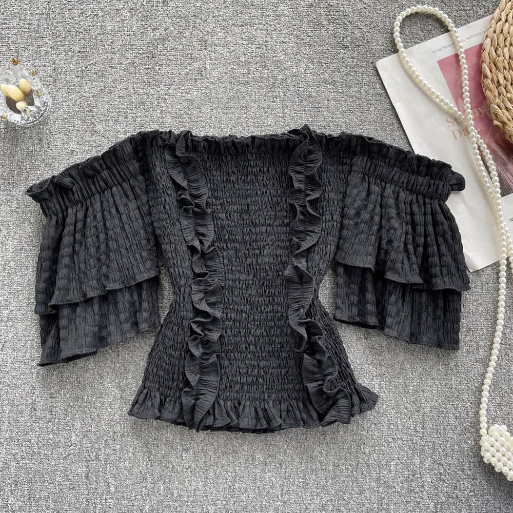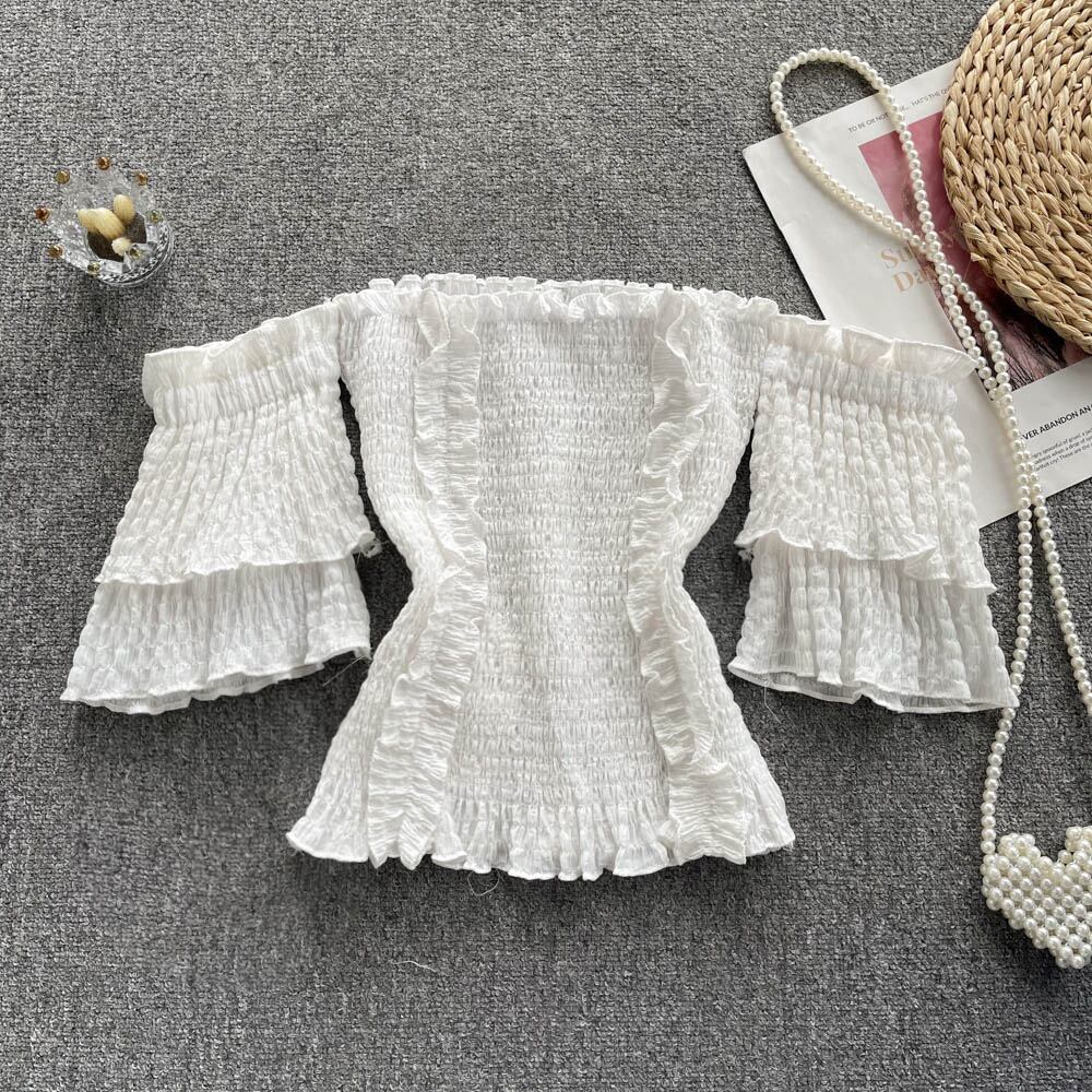 韓国版ワンショルダーチューブトップシャツレディースデザインセンスニッチスウィート菌エッジステッチプリーツスリムフィット気質トップ 大人ガーリー キュート カジュアル lyxaj74910799953