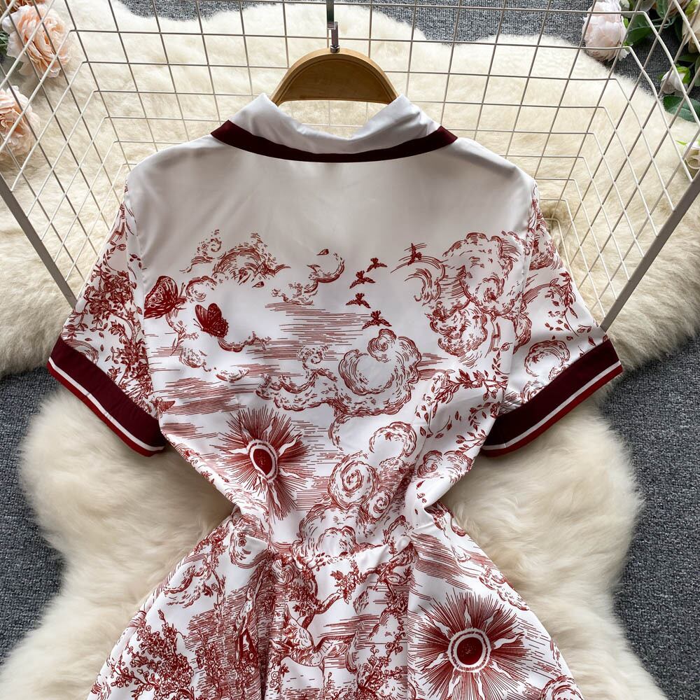 テンペラメントドレスサマーシンセクション2022新しい女性ニッチデザインウエストホリデースタイルプリントシャツロングスカート 夏物 lyxaj26557487182