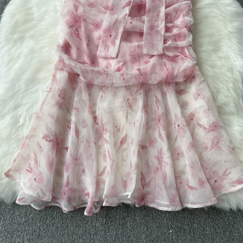 テンペラメントドレスレディースサマーニューレディスタイルドレスレディーススキームプリーツスリムミドル丈シフォンフィッシュテールスカート 夏物 lyxaj20185278184