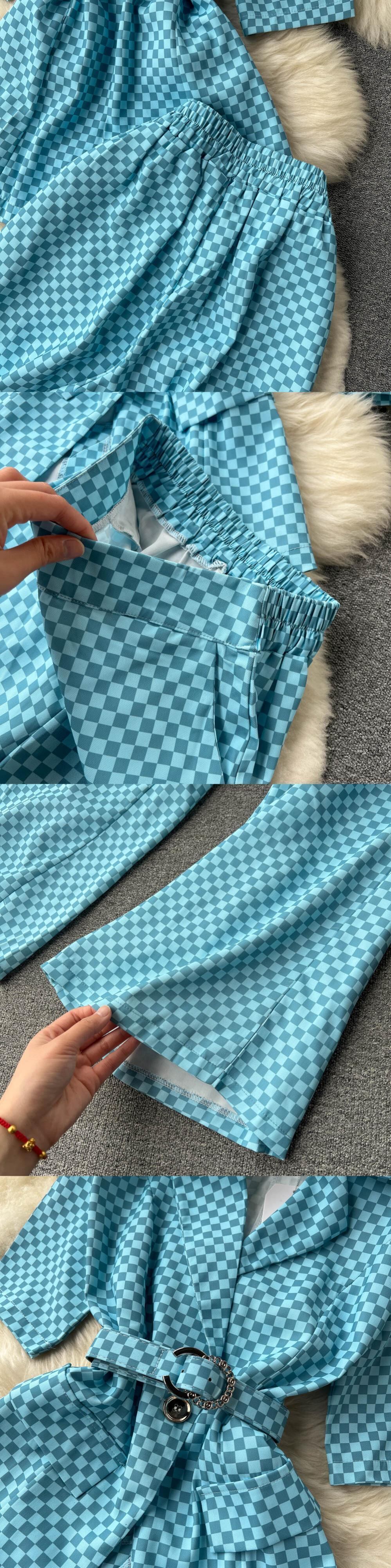 チェック柄レディーススーツ2022年新作レディースラペルスーツトップレディースハイウエストワイドレッグパンツスモールフレグランスツーピースセット ハイウェスト ワイドパンツ lyxaj3836477590