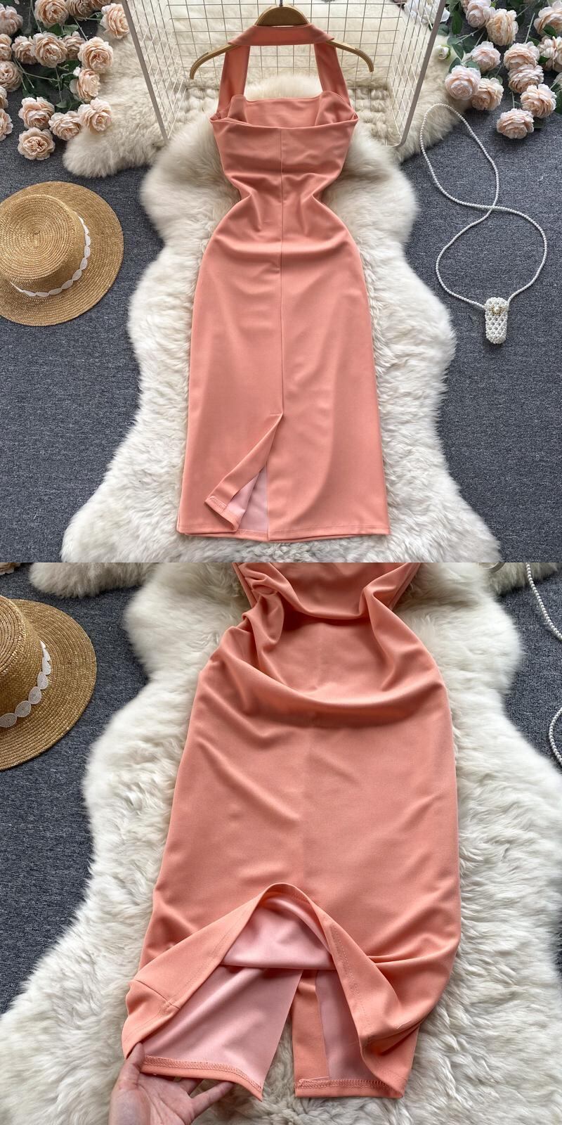 純粋な欲望風ホルターネックオープンバックセクシーバッグヒップスリムドレス女性2022年夏新しいスーパー妖精気質スカート サマー 夏物 スリムヒップ lyxaj12170832109
