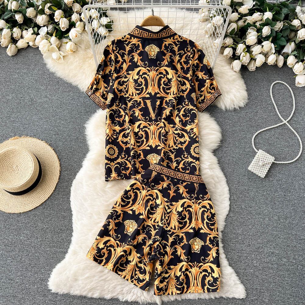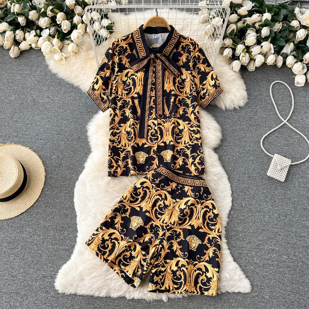 ヨーロッパとアメリカのins女神ファン気質レディースハイエンドスーツ女性ファッション印刷シャツ+ショーツツーピーススーツトレンド ブルマー ヨーロピアン lyxaj69509258492