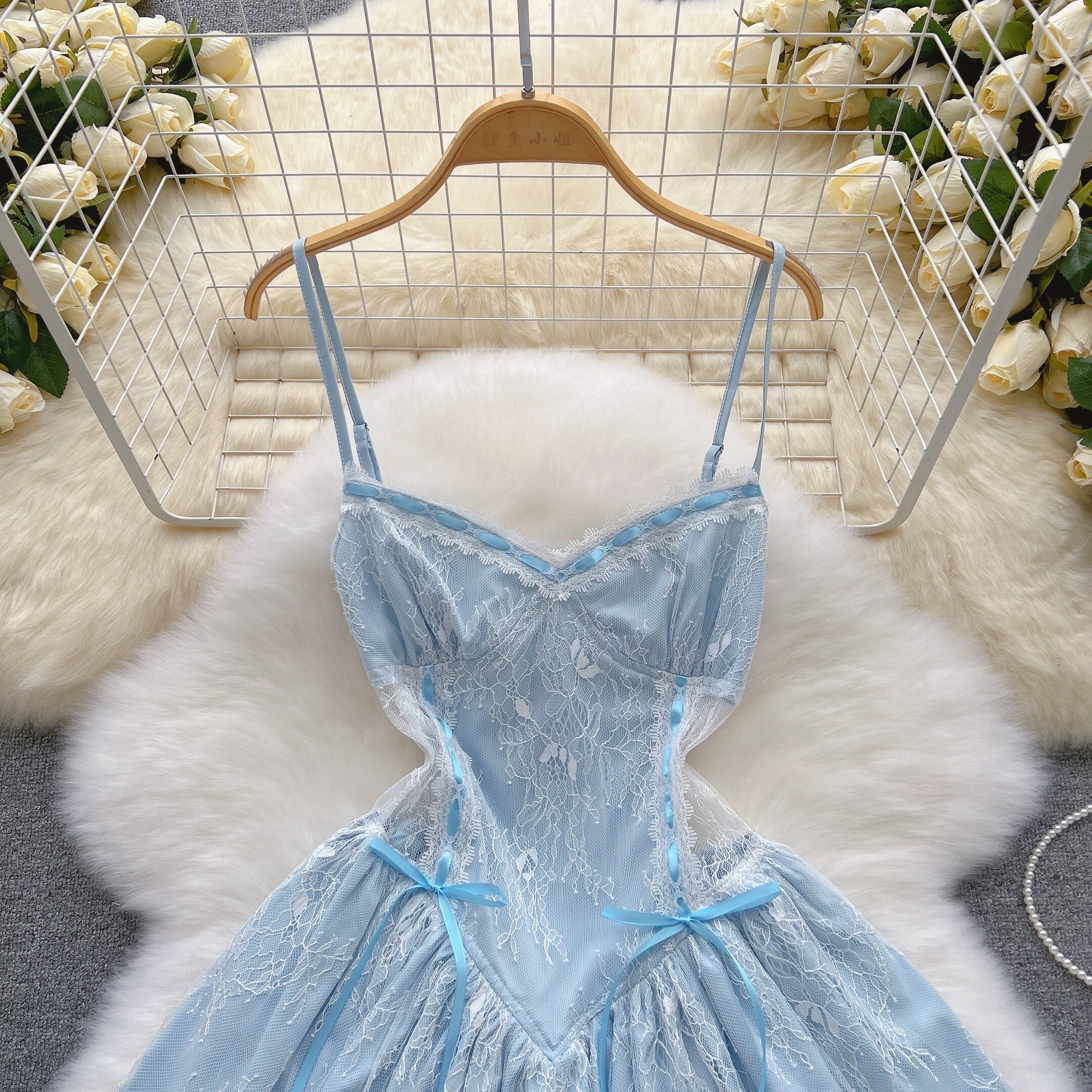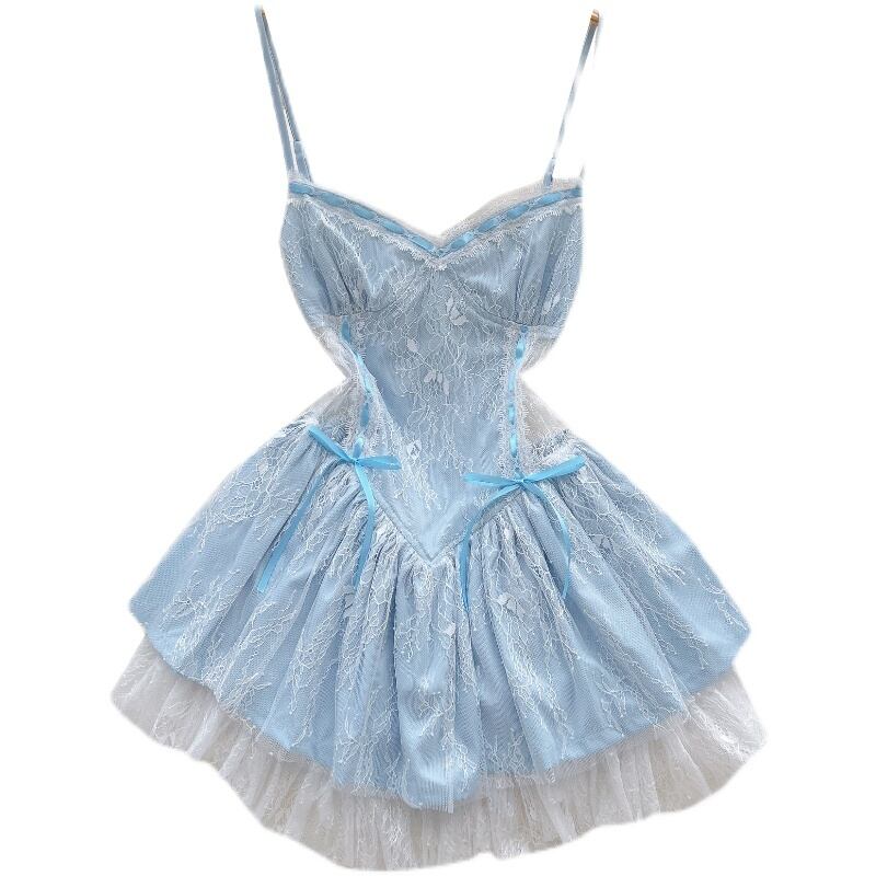 純粋な欲望セクシーなVネックレースサスペンダースカート2022年夏新しいスリムフィット、甘くてスパイシーなスタイル、スーパーフェアリー気質、ショートスカート 大人ガーリー スウィート キュート カジュアル サマー 夏物 lyxaj624414857