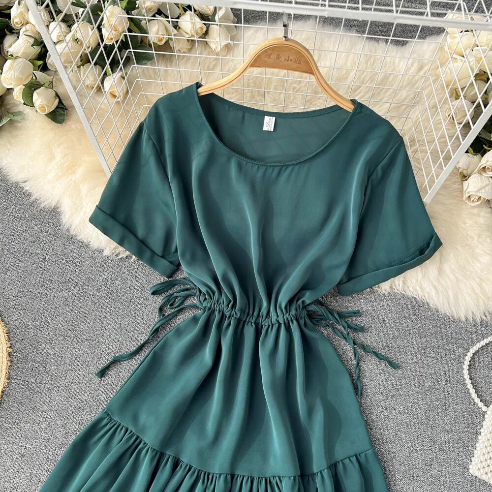 ラウンドネック無地ドレスの夏のファッション韓国版 サマー 夏物 Oネック ソリッドカラー lyxaj4913212671