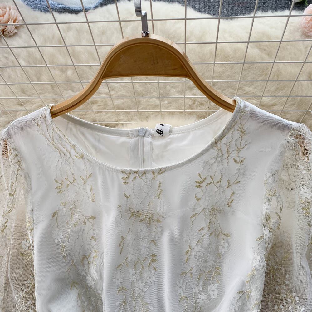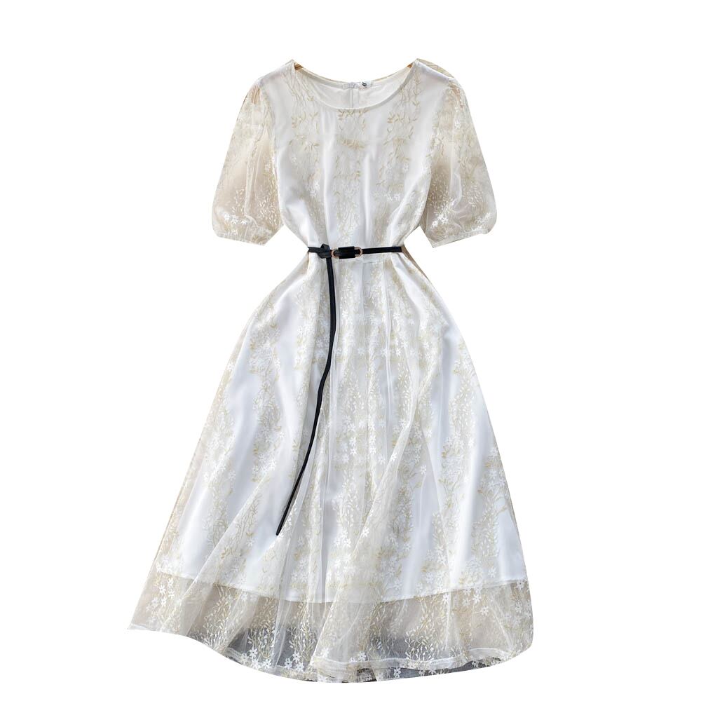 初恋メッシュレースドレス夏新しい中空フランスの優しい妖精スーパー妖精甘い刺繡スカート潮 刺繍 大人ガーリー スウィート キュート カジュアル サマー 夏物 lyxaj53295498694