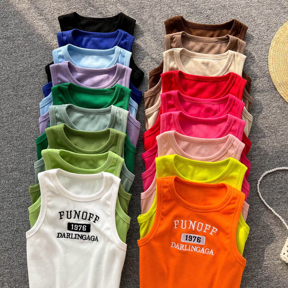 ファッションレター刺繡ベストの韓国版女性のアウターウェア2022年夏新しいスリムフィットと薄いショートオールマッチトップトレンディ 刺繍 サマー 夏物 lyxaj3089407062