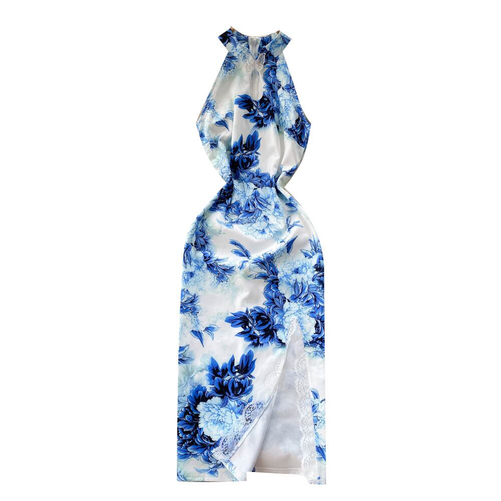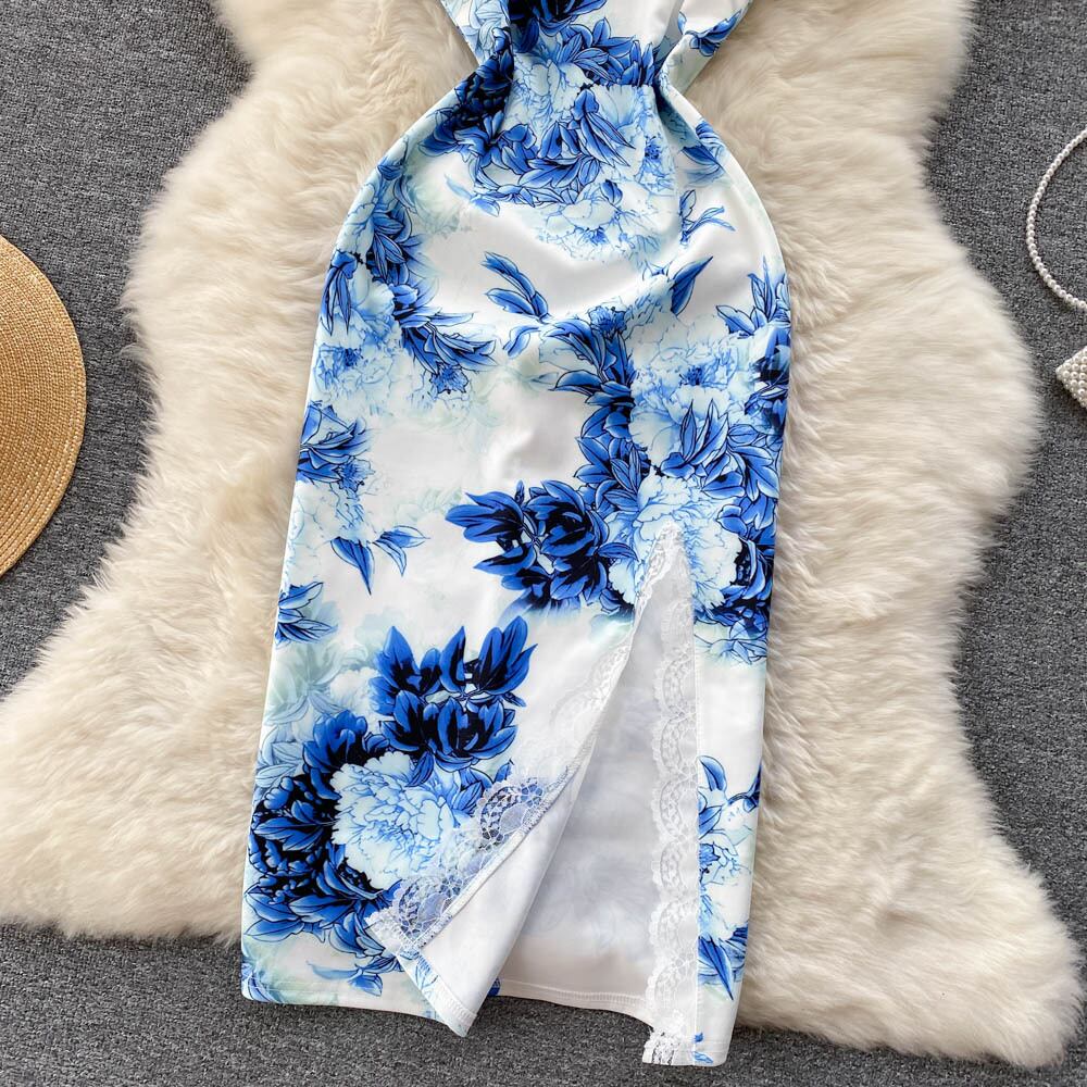 2022年夏のヨーロッパとアメリカの新しいレトロなプリントの女の子の若い改良されたスリムなチャイナドレスドレススリットロングスカート サマー 夏物 ヨーロピアン lyxaj36779033507