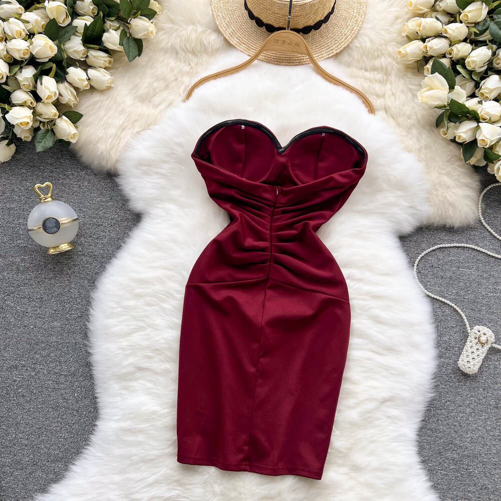 純粋な欲望セクシーなオフショルダーの女性の気質の宴会のイブニングドレス短いスリムな痩身バッグヒップチューブトップボトミングドレス ショート lyxaj74431843107