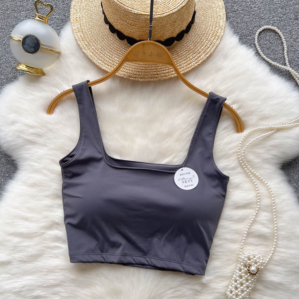 キャミソールベストスポーツチューブトップ下着女性スチールリングなし美しいバックブラ一体型ハイウエストショートおへそボトミングトップ ハイウェスト 指輪 lyxaj87135809497