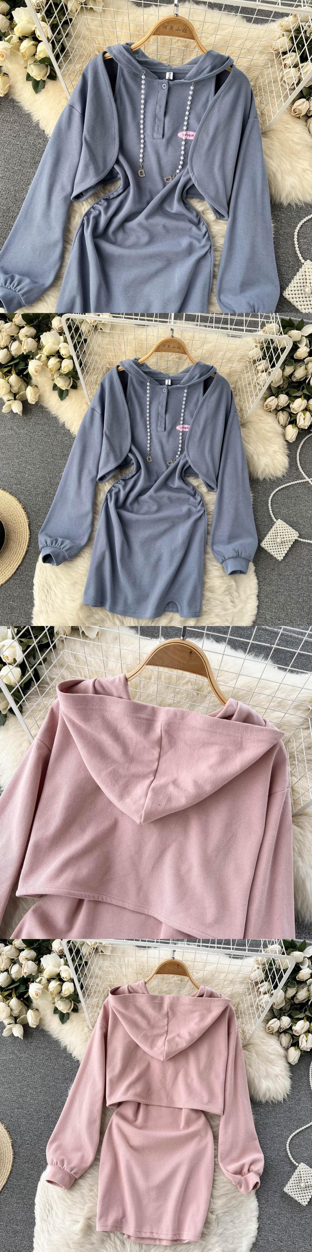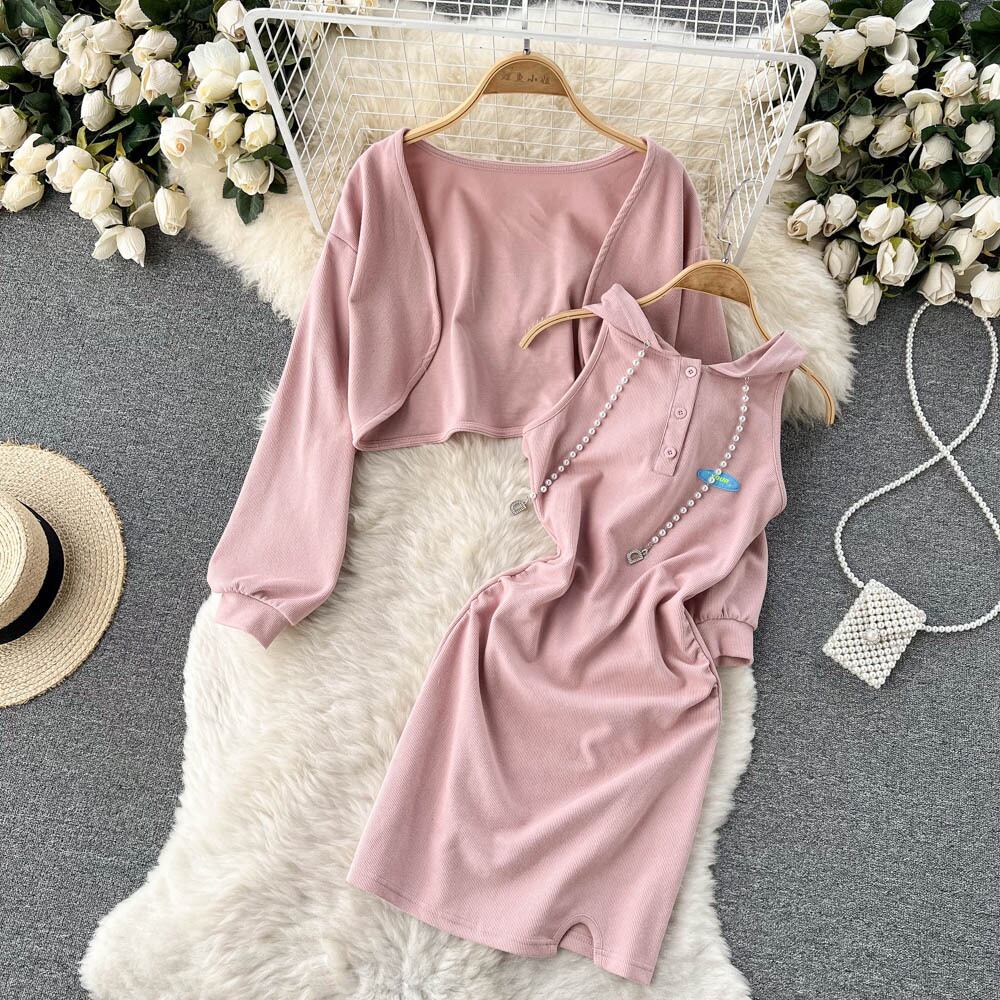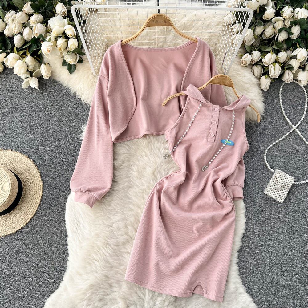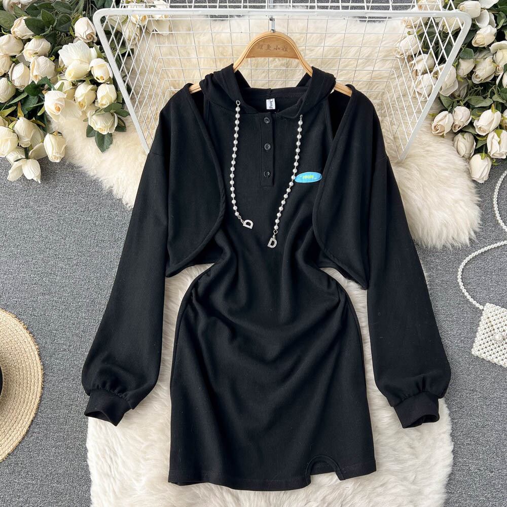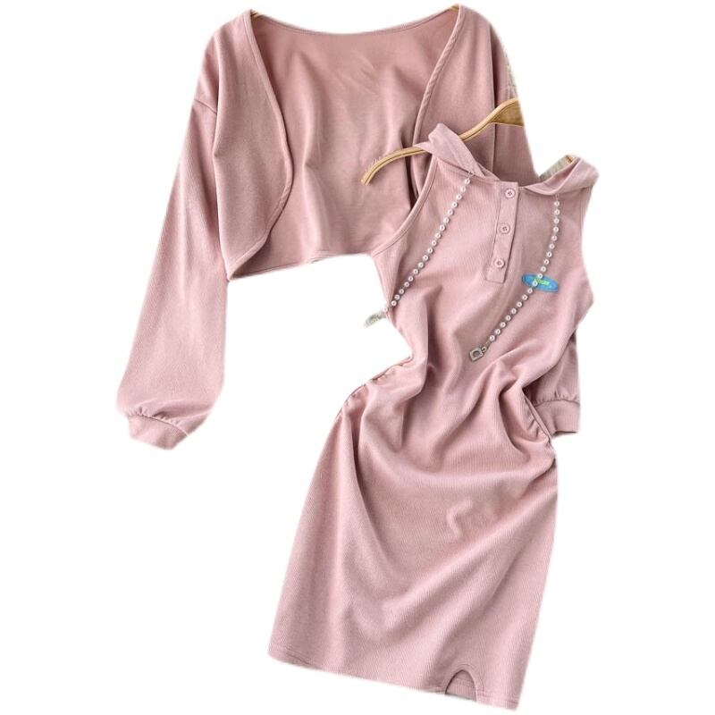 春先の新しい香港スタイルのスーツウエストスリングフード付きベストドレス長袖カーディガンショールツーピースタイド ロング スプリング 春物 lyxaj62943285927