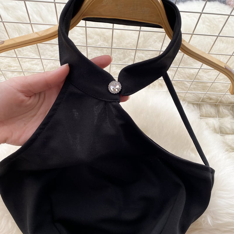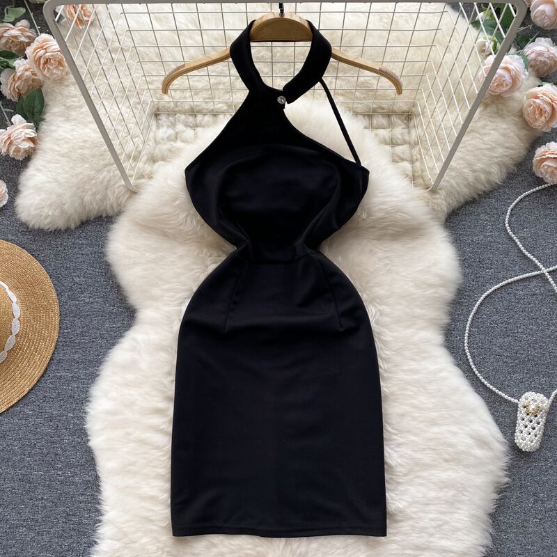 セレブ気質オフショルダーハンギングネックノースリーブセクシーな美しいバックブラックドレス女性のウエストは薄いバッグヒップバンケットドレスでした lyxaj55273923840