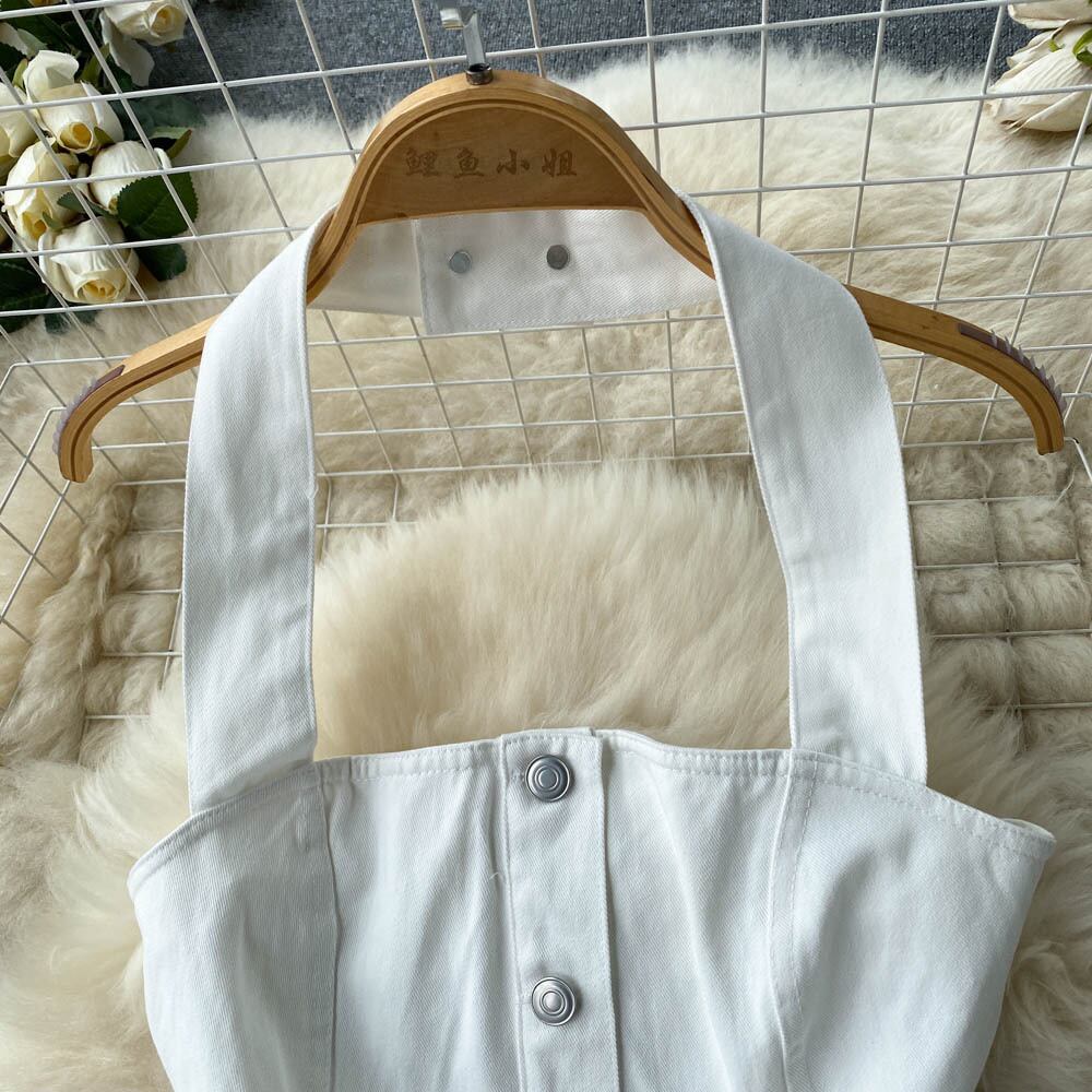 優しい風のドレス女性の夏の気質の女神ファンホルターネックチューブトップシングルブレストハイウエスト薄いスーパーフェアリーミドル丈スカート ハイウェスト サマー 夏物 lyxaj12538186559