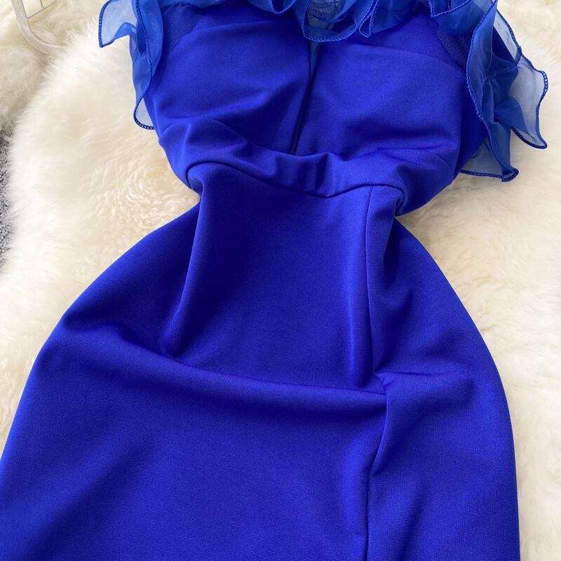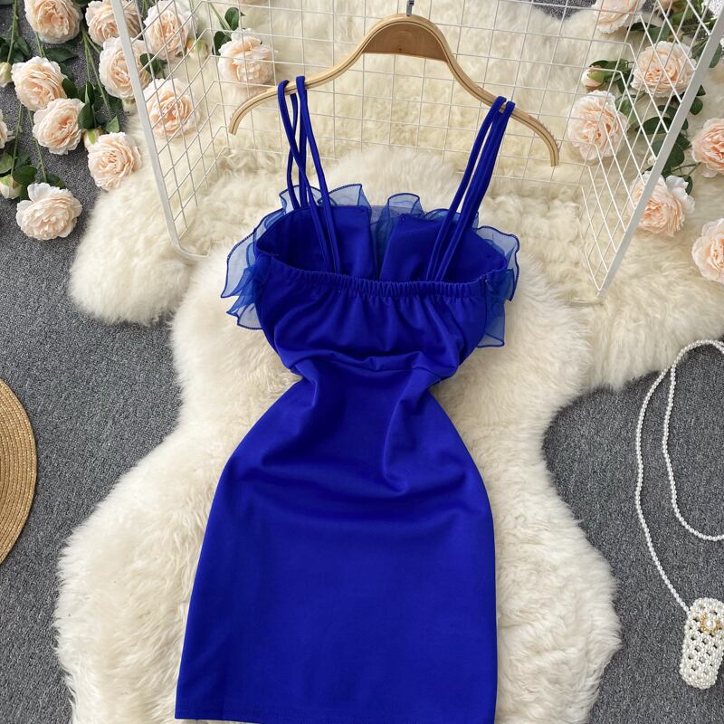 ホリデースタイルファッション立体花スリムフィットローカットセクシースリングAラインバッグヒップセクシースプリットドレス フラワーデザイン lyxaj38250691320