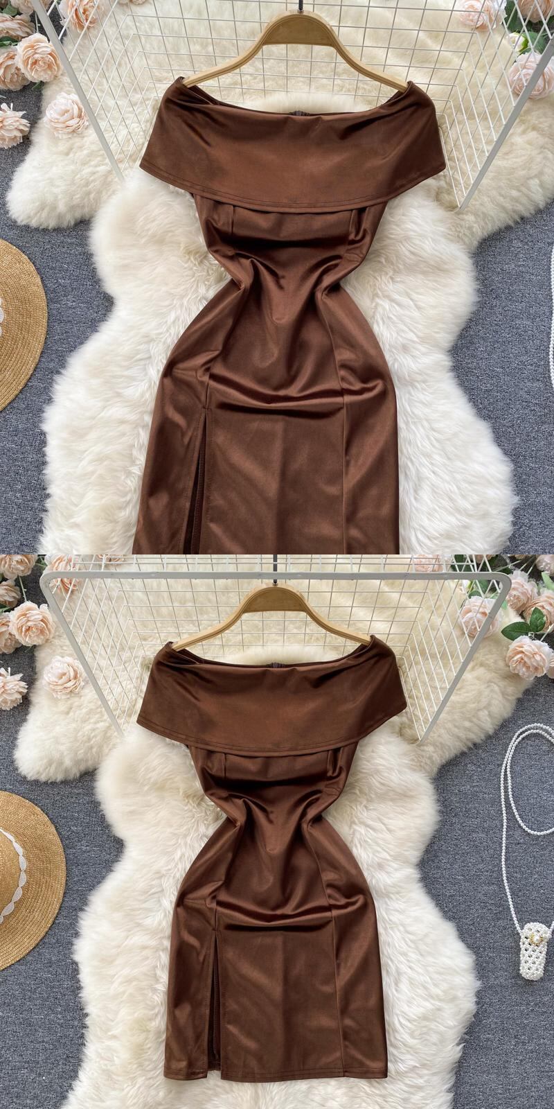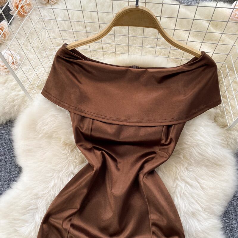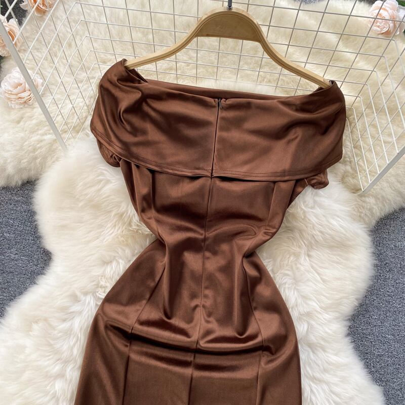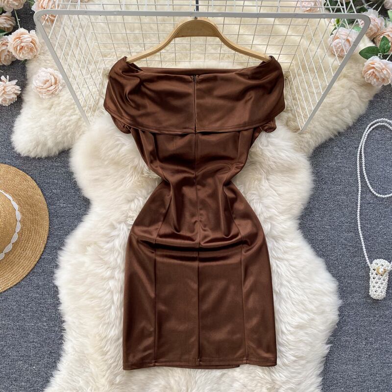 夏の新作ハイエンドオフショルダーワンワードカラー無地薄手気質ウエストバッグヒップショートスカートフレンチドレストレンディ サマー 夏物 ソリッドカラー lyxaj67261496262