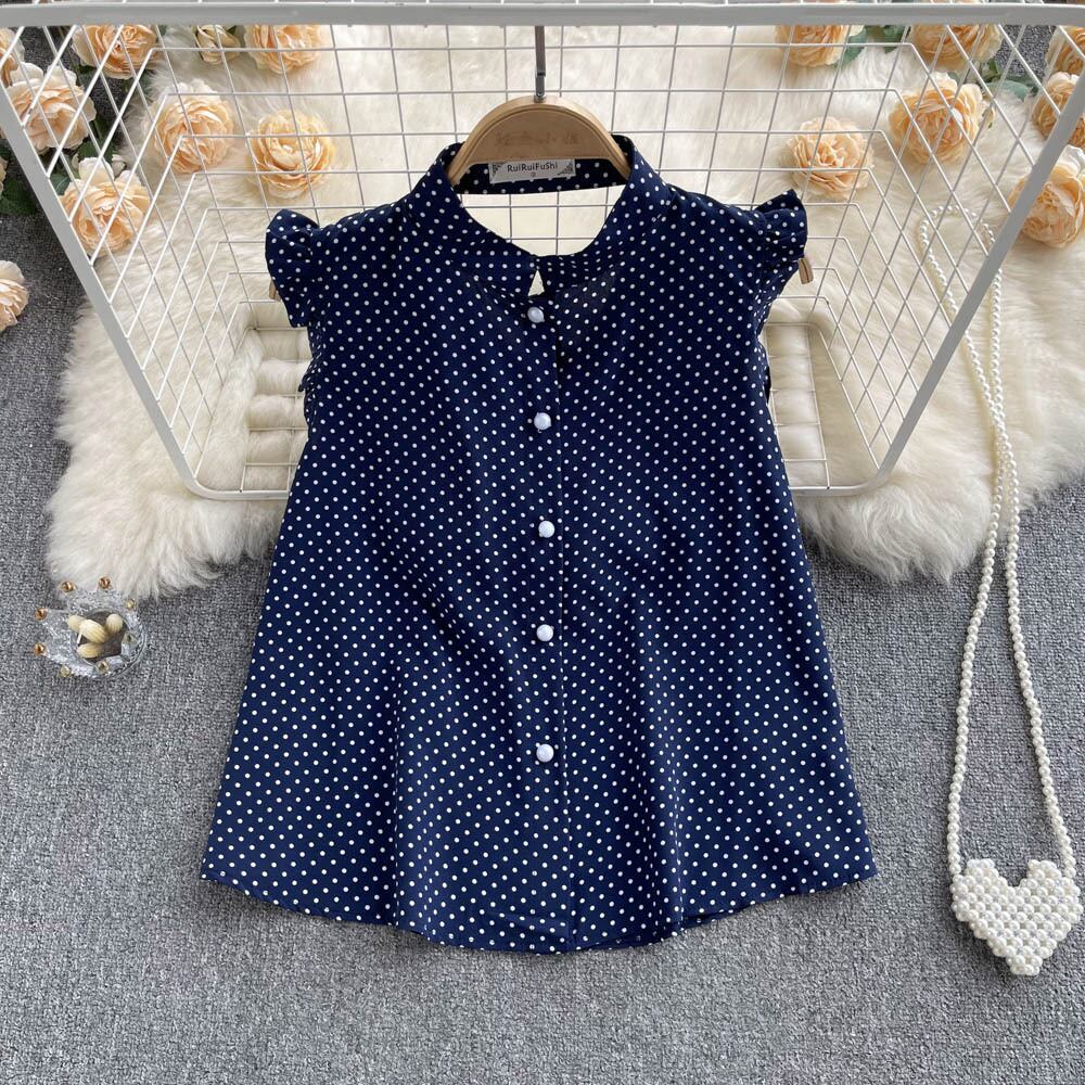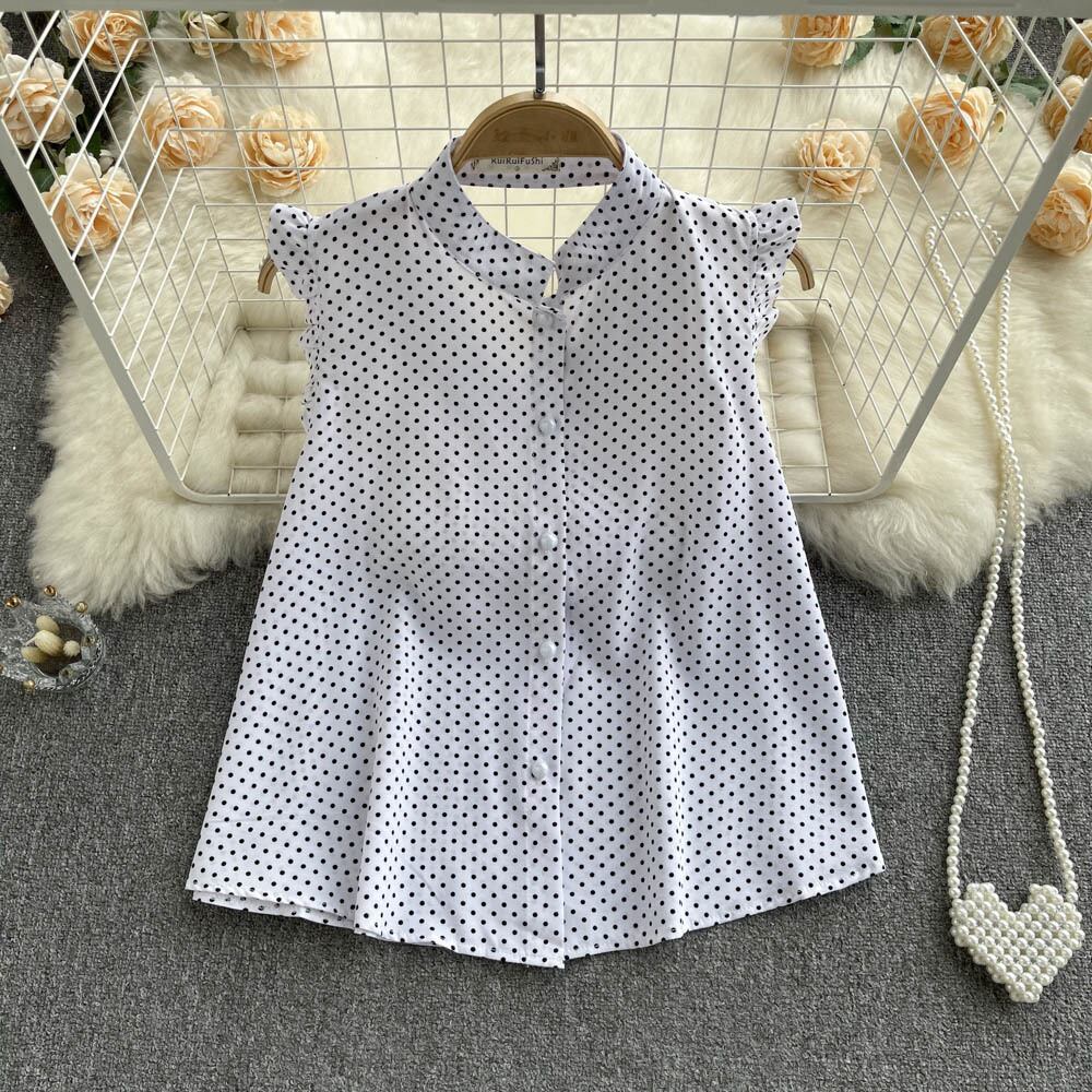 シックな風の妖精の甘いスタンドアップカラーシングルブレストシャツ2022年夏新しいルーズノースリーブ気質水玉トップ 大人ガーリー スウィート キュート カジュアル サマー 夏物 lyxaj62637239408