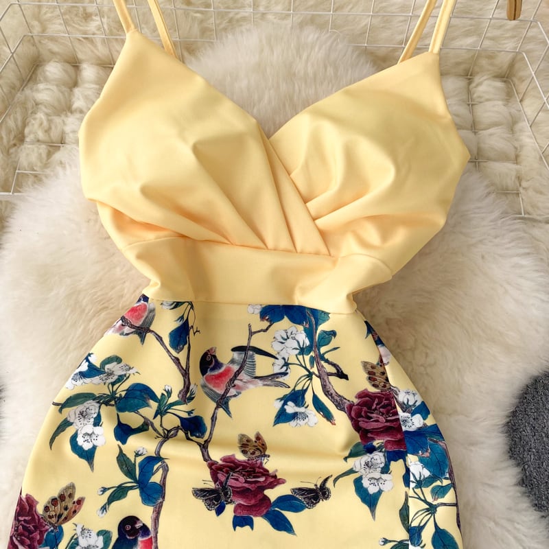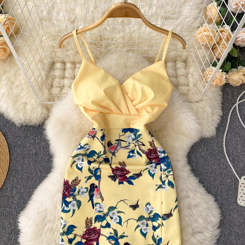 純粋な欲望セクシーなローカットドレス女性2022年新しい夏のホットな女の子洋風プリントサスペンダースカートタイトフィットヒップスカート サマー 夏物 lyxaj11043638722