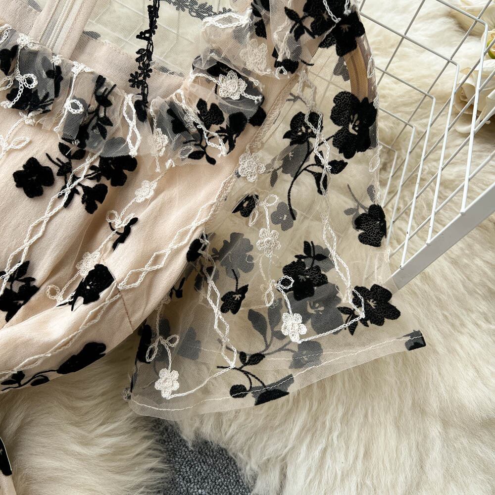 優しいティーブレイクフレンチファーストラブドレスシックなデザイン植毛プリントスカートタックウエストラージスイングAラインスカート lyxaj14814826105