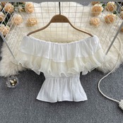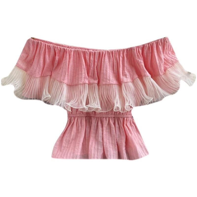 ワードカラーでステッチされた甘いレイヤードフリル レッド ラッフル 大人ガーリー スウィート キュート カジュアル lyxaj70687042588