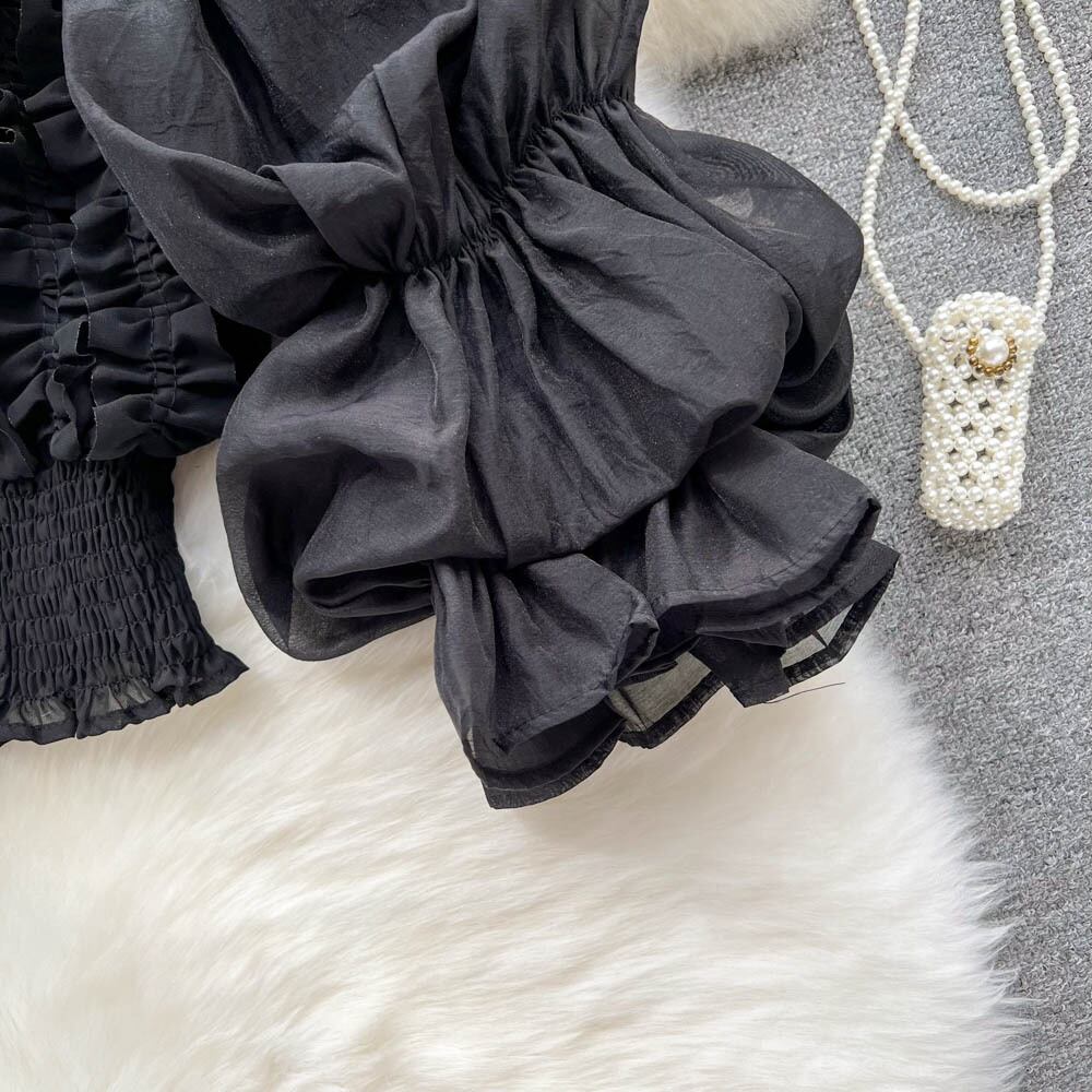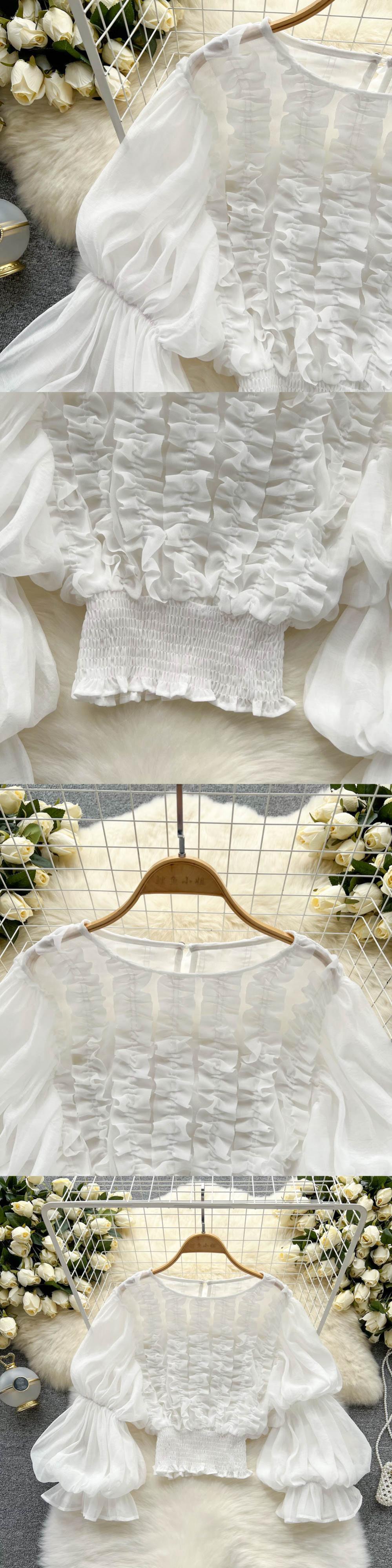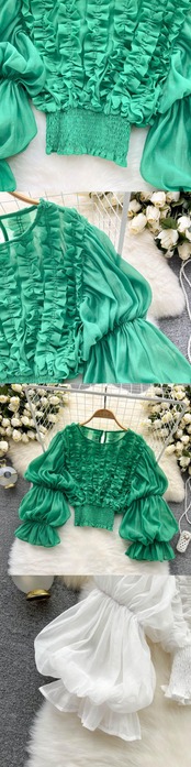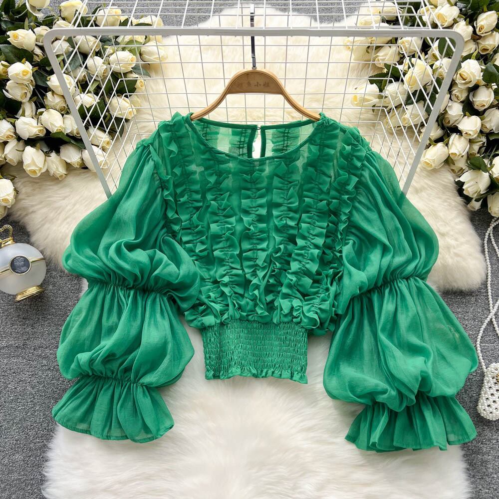 ヨーロピアンとアメリカンスタイルの菌レースデザインシャツレディースフレンチニッチランタンスリーブ気質スリムショートシフォントップ lyxaj2658046854