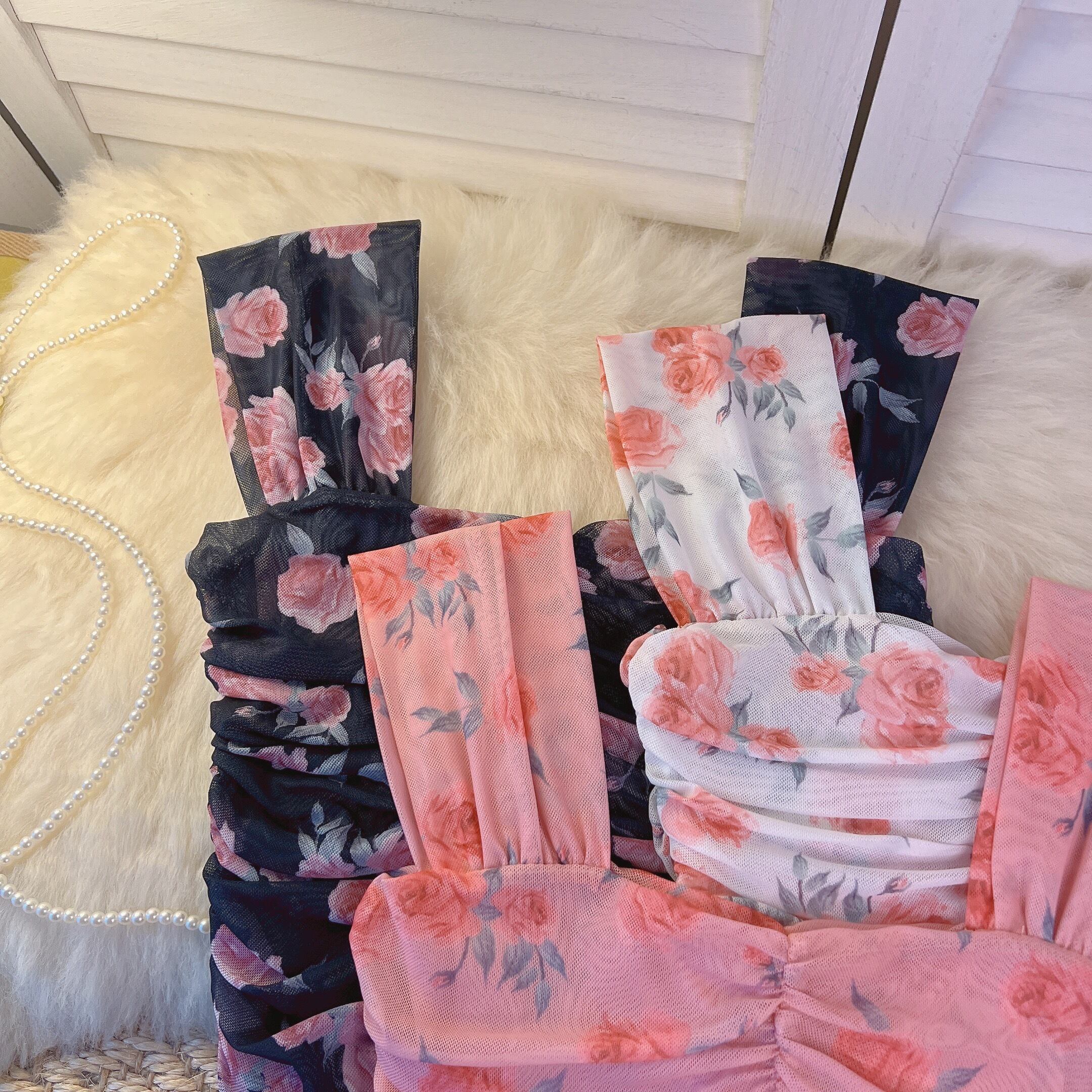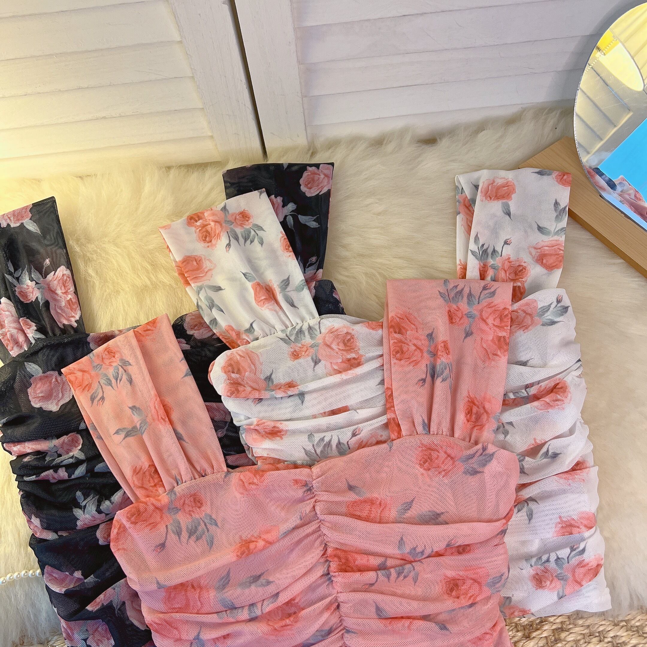 ピュアデザイアホットガールフローラルチューブトップショートスリングトップレディースプリーツスリムフィットシンスーパーフェアリー気質ウエスタンスタイルスモールタイドシャツ 花柄 lyxaj22848204249