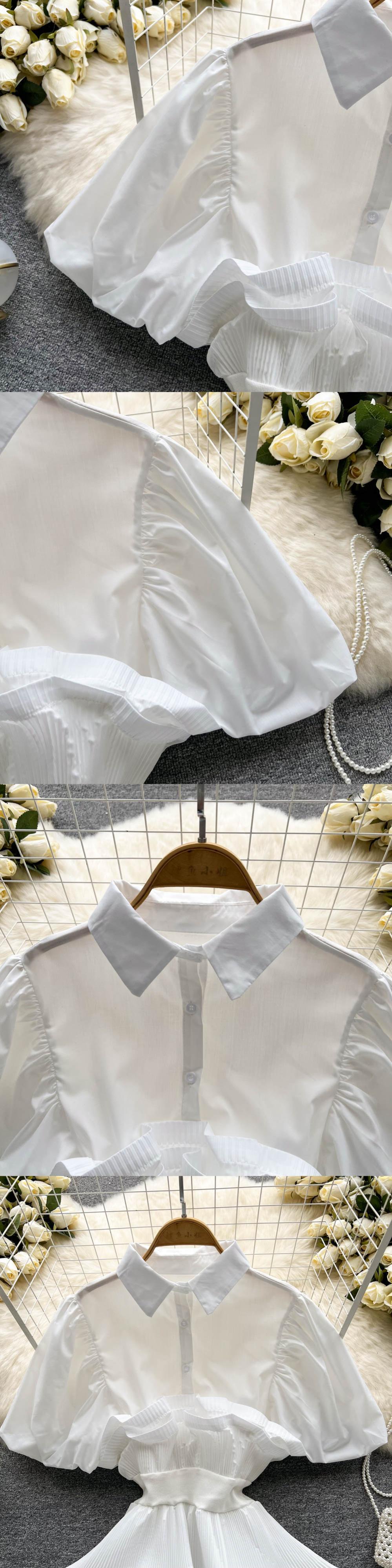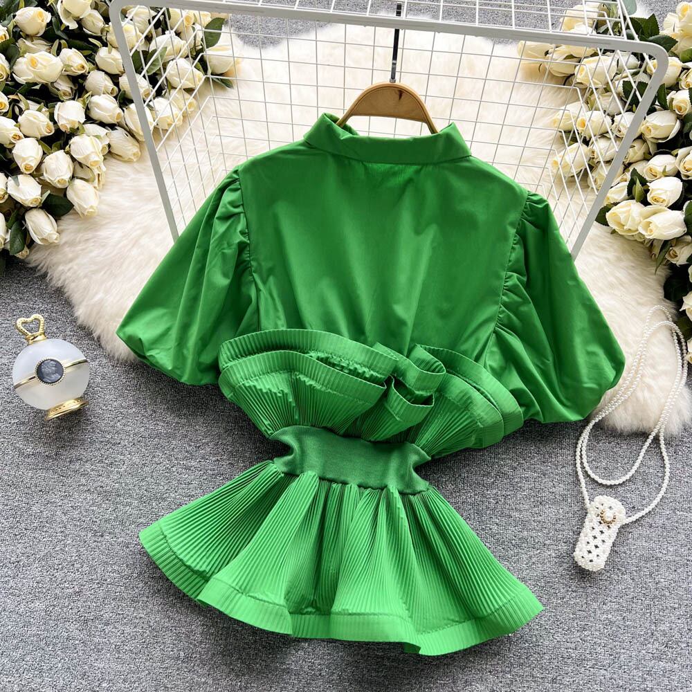 フランスのニッチなデザインセンスウエストスカートパフスリーブシャツ夏の新しい甘くて年齢を減らすスリムフィット気質トップ 大人ガーリー スウィート キュート カジュアル サマー 夏物 lyxaj99941473525
