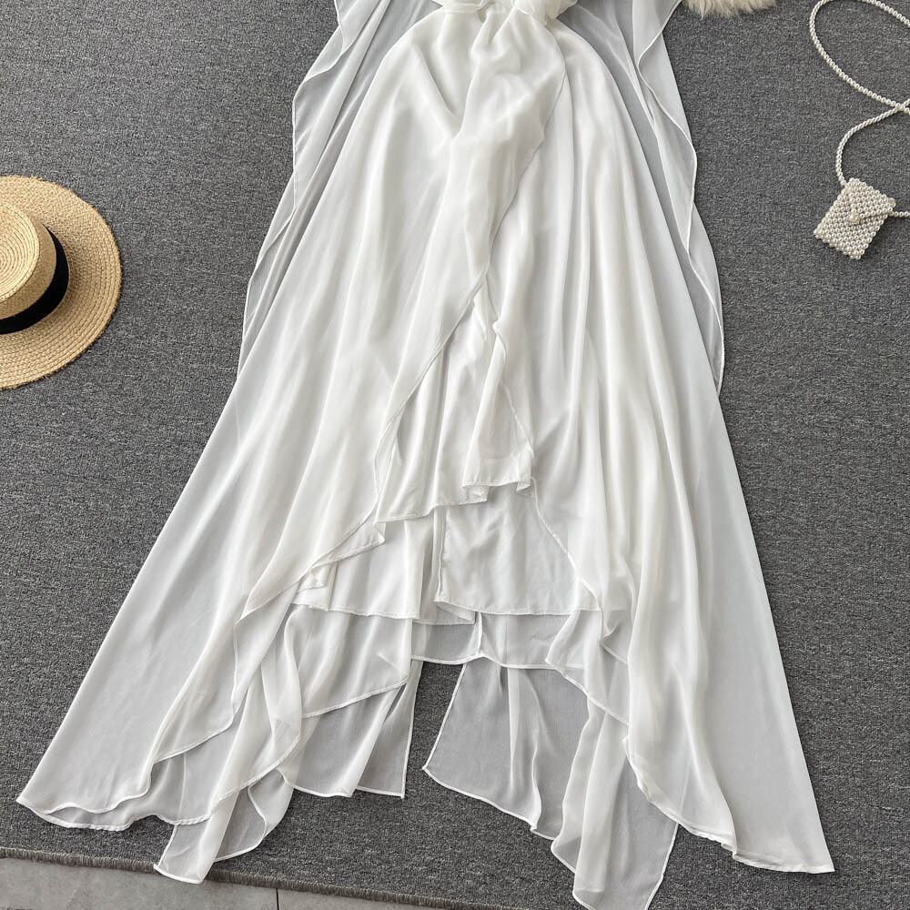 2022年春夏新作フレンチ優しいハイエンドセンス妖精姫初恋白ドレスルーズビッグスイングロングスカート ホワイト スプリング 春物 サマー 夏物 lyxaj59386648713