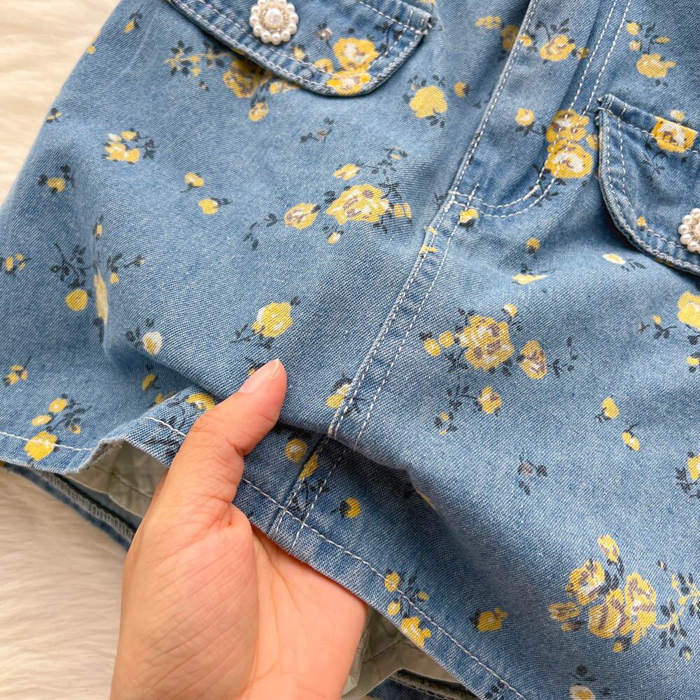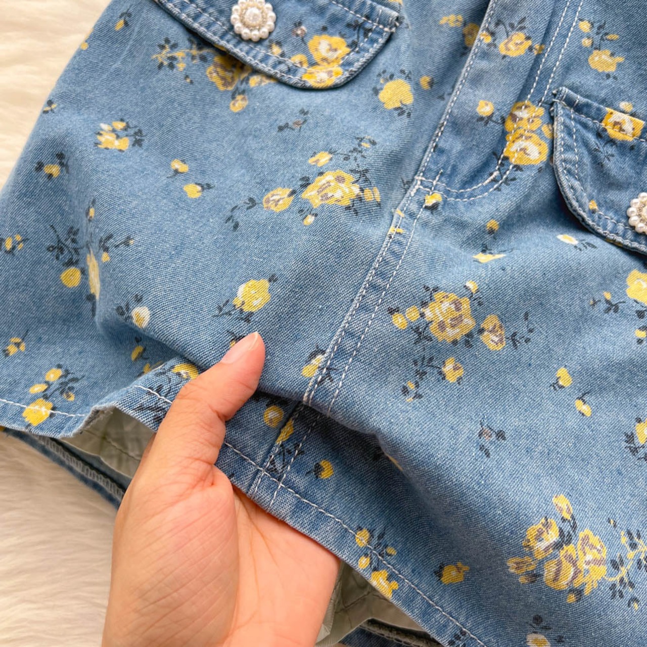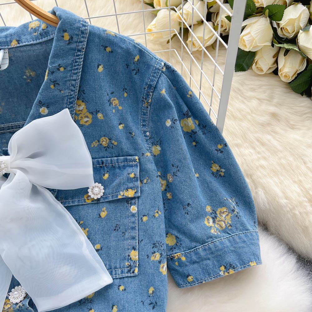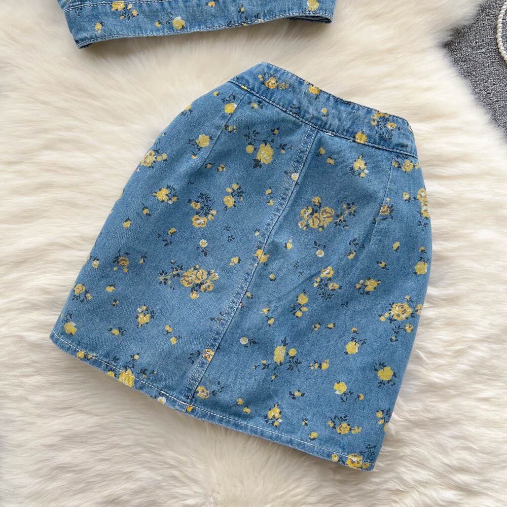 ウエスタンスタイルスーツレディースサマースタイル年齢を減らすパフスリーブショートトップレトロデニムプリントスカートファッショナブルなツーピースセット 夏物 lyxaj68903309130