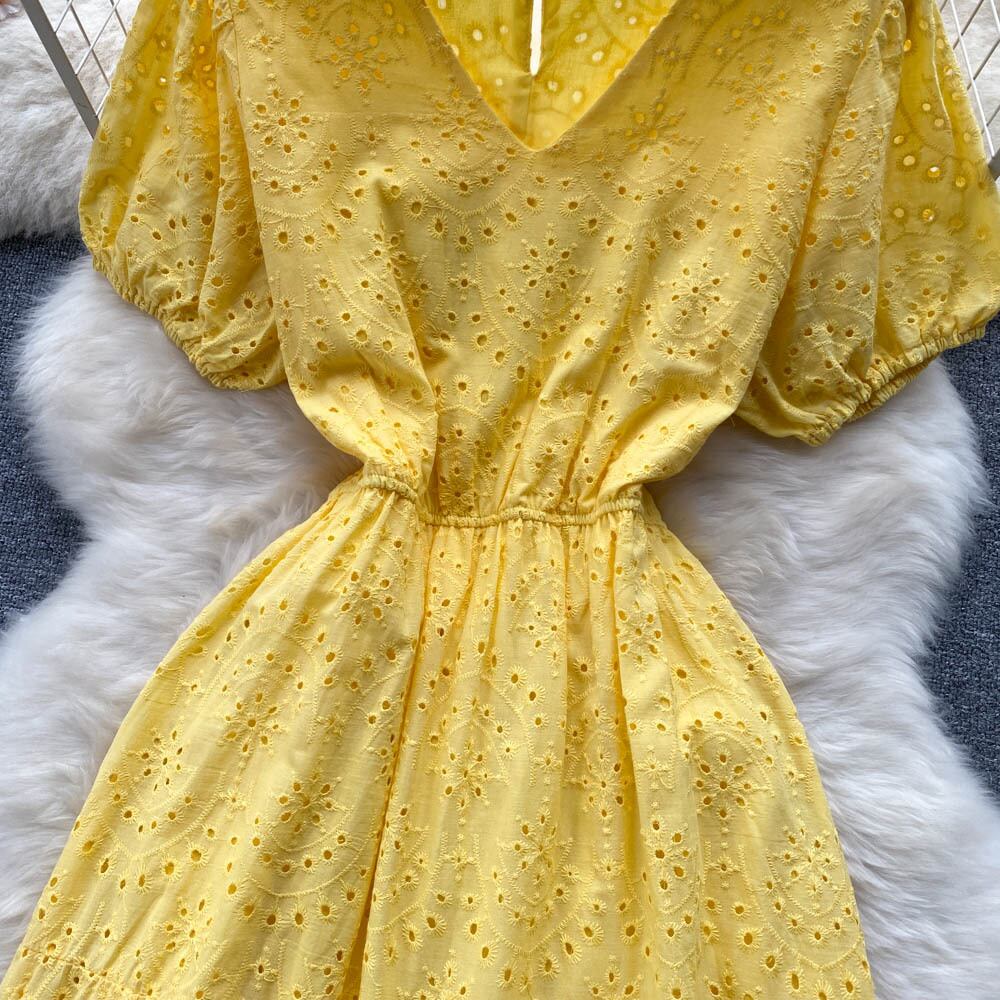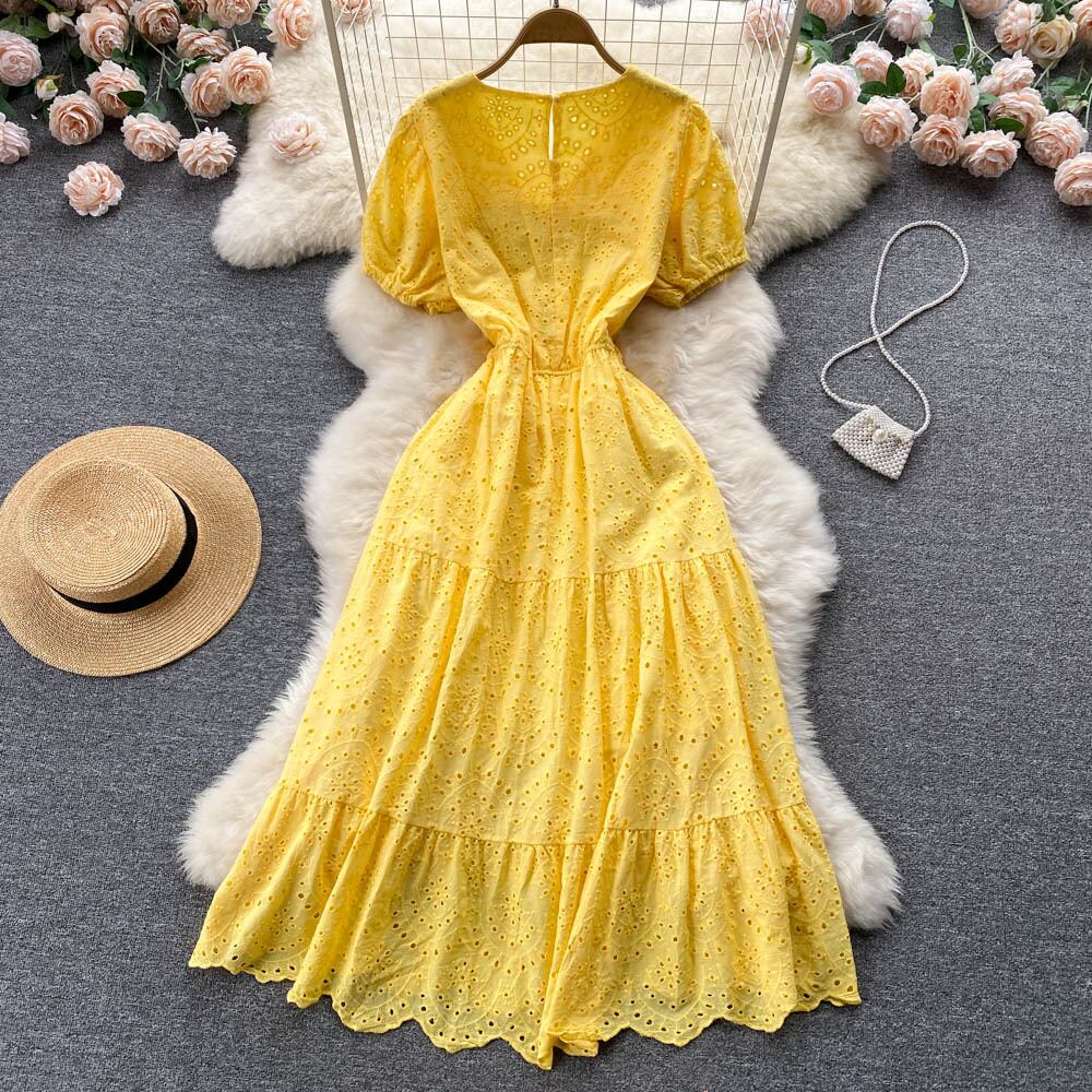 スーパーフェアリーレトロ気質フレンチコートスタイル小さな新鮮な蓮の葉中空ウエストウエスト薄い無地初恋ドレス ソリッドカラー lyxaj81908318848