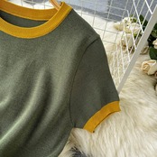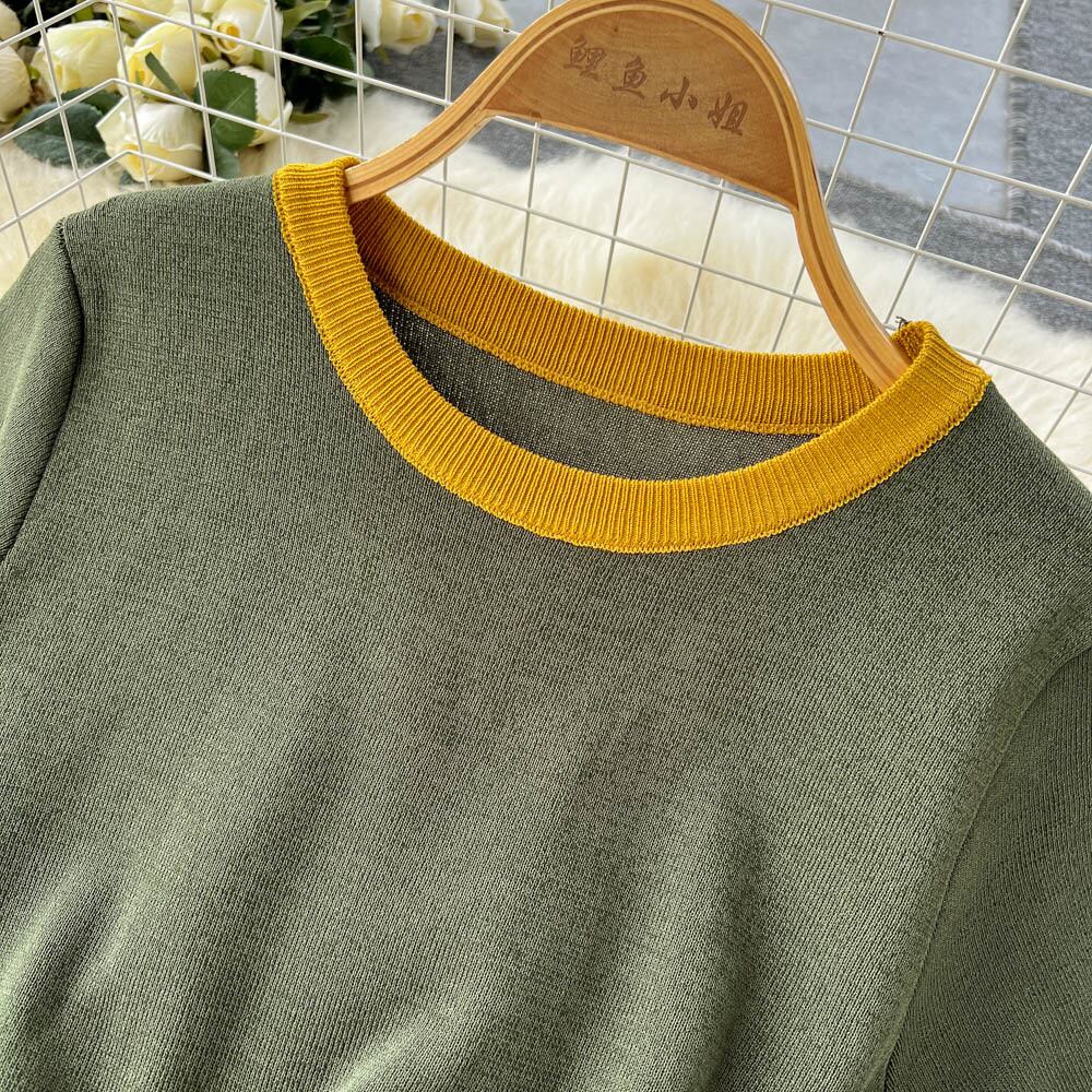 フレンチレトロコントラストカラーニットスーツレディース夏2022新作ファッション優しいミドル丈スカートツーピースセット サマー 夏物 lyxaj64534965140