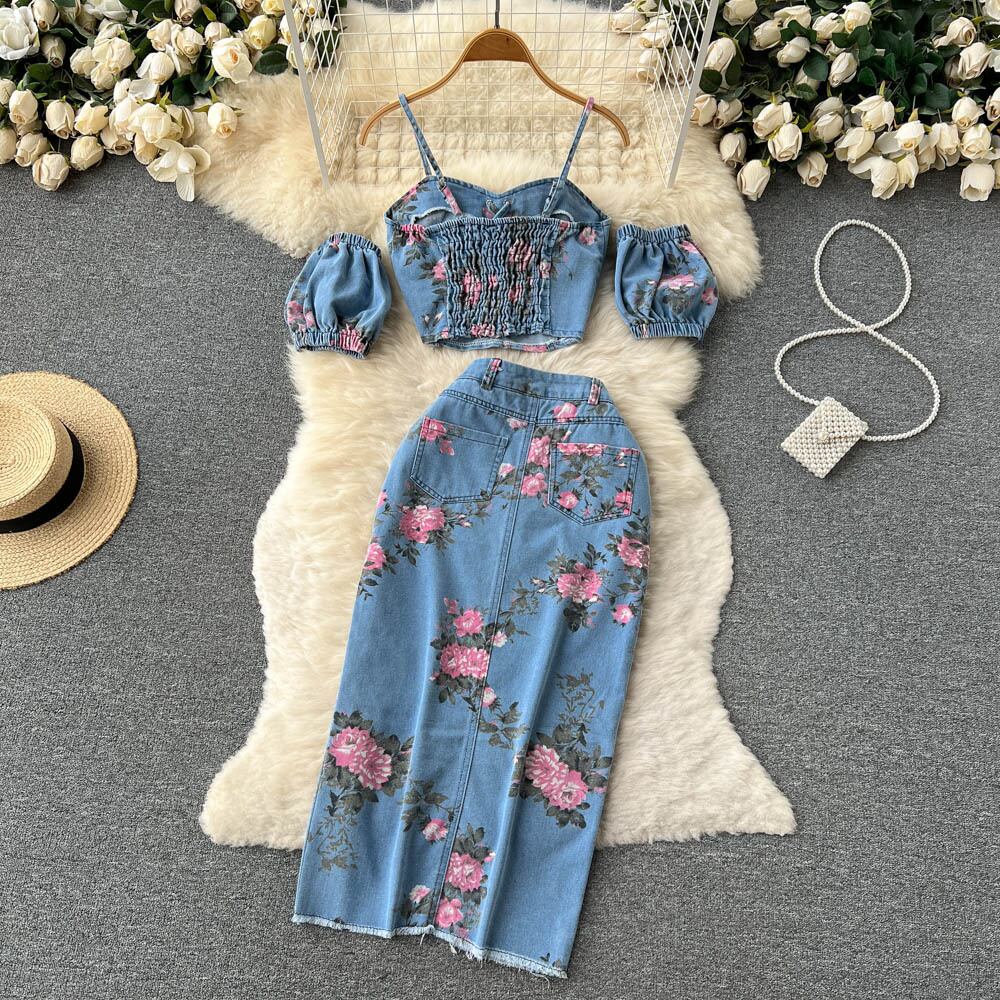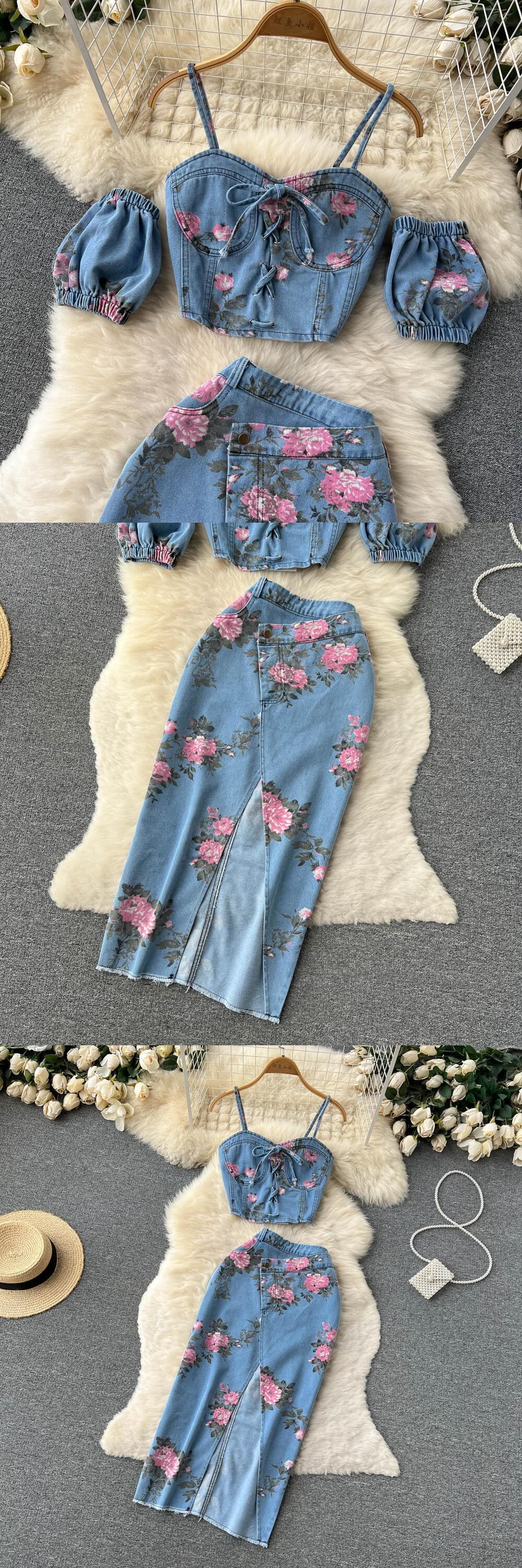 香港スタイルのレトロなシックなスーツの女性の甘いホットな女の子のストラップレスキャミソールは、ハイウエストのスプリットスカートツーピースを身に着けています 大人ガーリー スウィート キュート カジュアル lyxaj18978975304