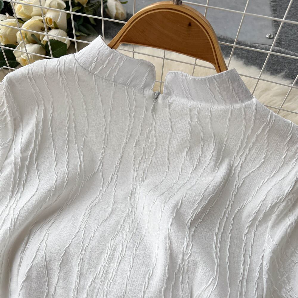 シックなフレンチ気質スタンドカラー半袖ワンピース2022年夏の新作ウエスト丈Aラインワンピース サマー 夏物 lyxaj64647756259