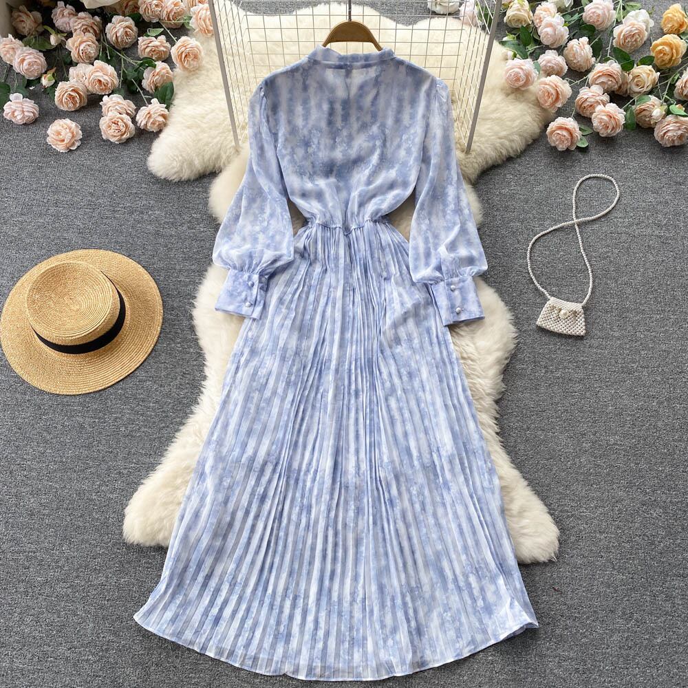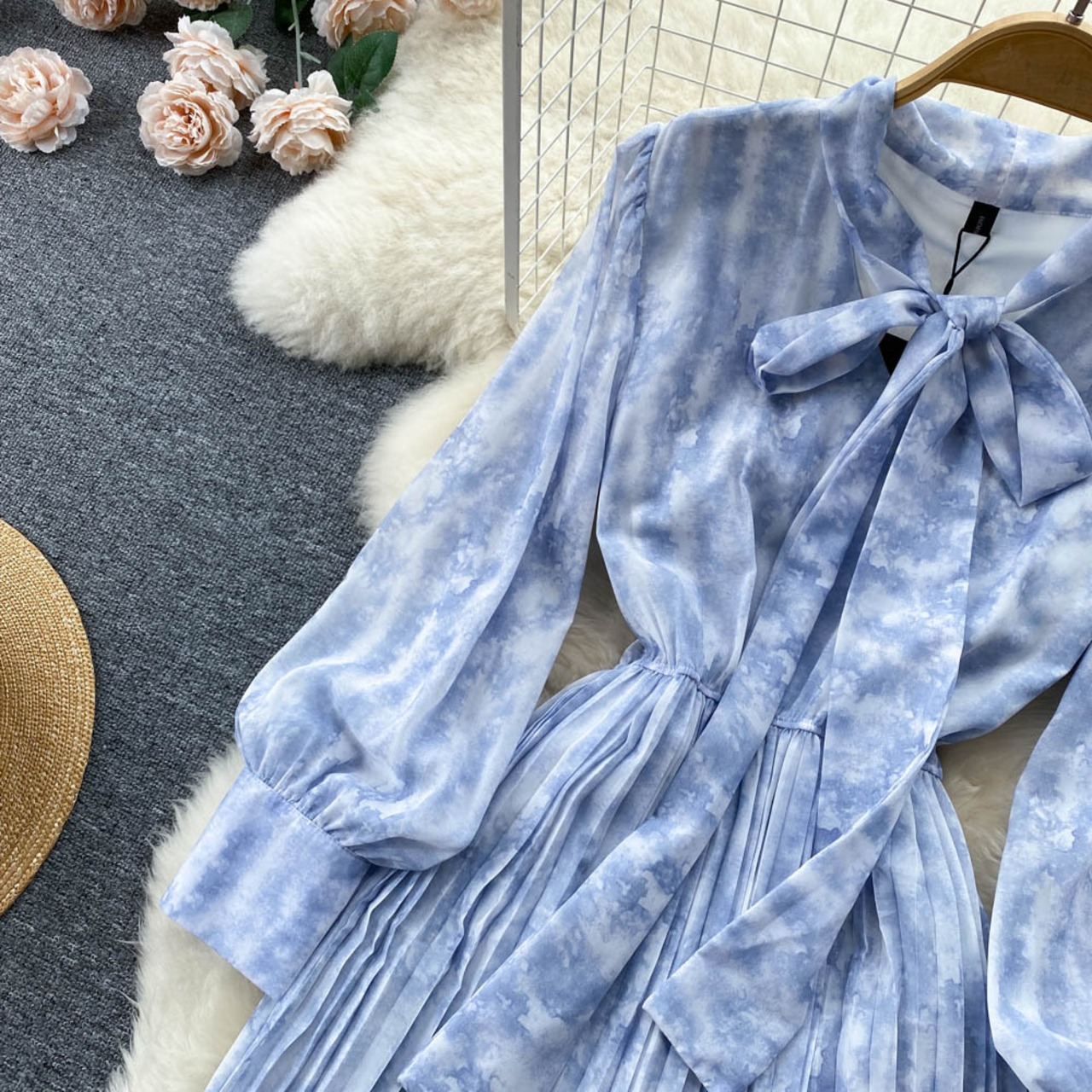 2022年夏のライトブルーティーブレイクフランスの高級ドレス女性のウエストは細くて超妖精ビッグスイングロングスカート サマー 夏物 lyxaj10345482422
