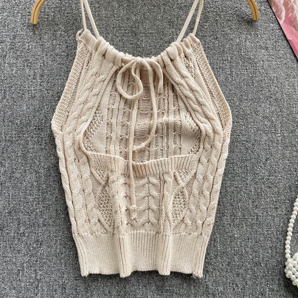 夏の新韓国バージョンニットキャミソールレディースバックストラップ中空無地セクシーホットガールショートトップトレンディ サマー 夏物 ソリッドカラー lyxaj77214868810