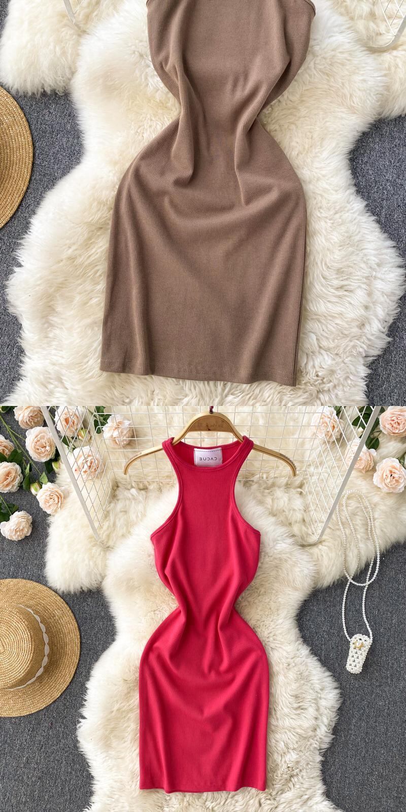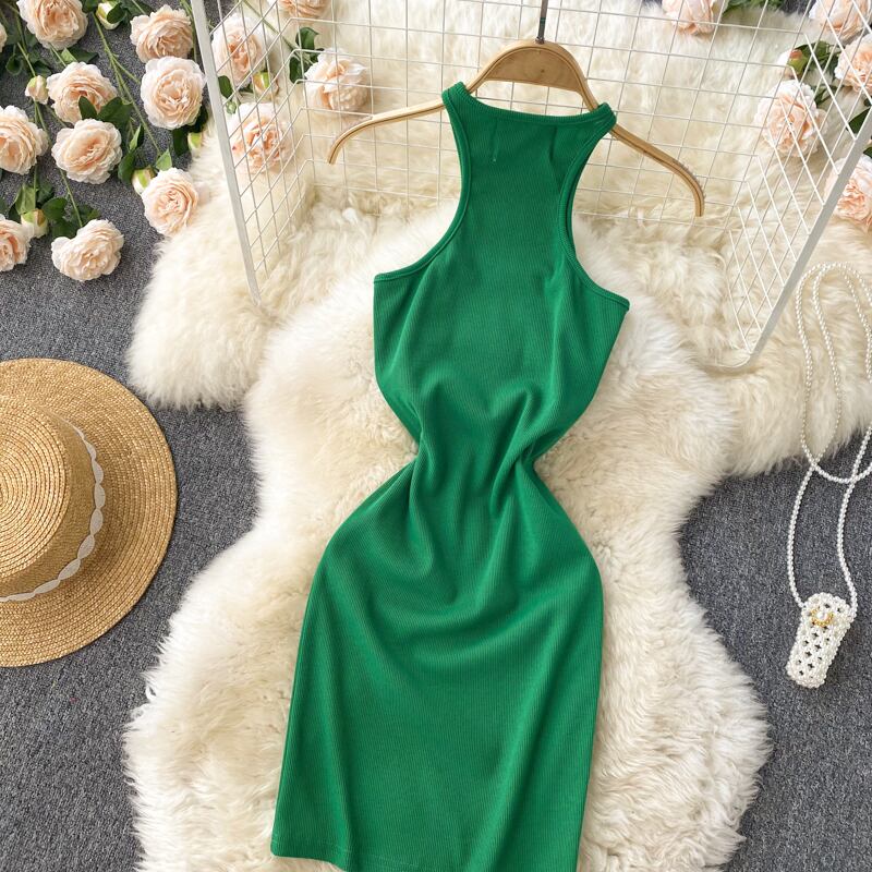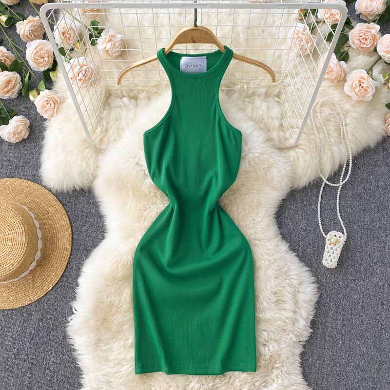 2022 Summer Simple Solid Color Sexy Vest Slim Fit Tight Tight Hip Dress Knitted Skirt Trend サマー 夏物 スカート スリム ソリッドカラー lyxaj40030720290